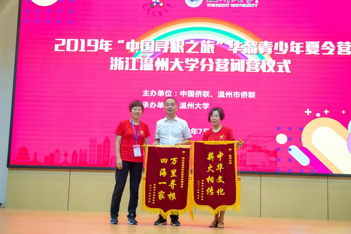 来自全美中文学校、西班牙中文学校的领队代表为表示对承办单位温州市侨联、beat365中文官方网站的感谢。特将代表着感谢与友谊的锦旗、礼品送至市侨联、beat365中文官方网站领导手中。