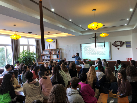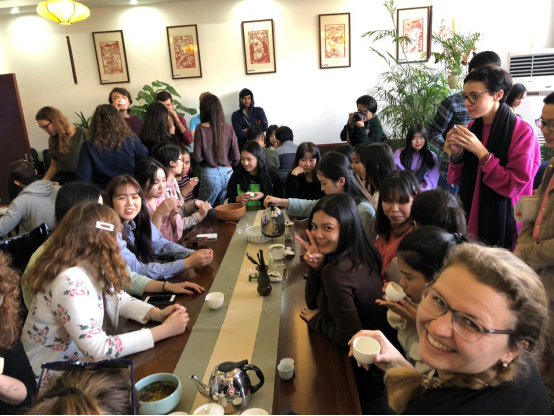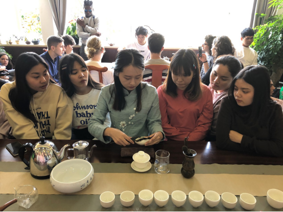 在这愉快的氛围之中,两个小时的茶艺文化课进入尾声,很多学生依旧拿着自己的茶杯品着醇厚芬芳的茶。