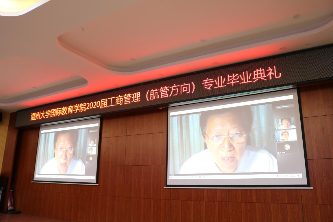 6月20日晚,beat365中文官方网站在3-203隆重举行2020届工商管理(航管方向)专业毕业典礼。全体院领导、学生处副处长包含丽、人事处副处长陈文远、航管教研室老师、各相关科室负责老师、全体毕业生、部分在校生参加了本次典礼。本次毕业典礼同时采用网络直播方式进行,让受疫情影响,无法来现场的部分教师及家长也能在“云端”为毕业生们送上美好的祝福。