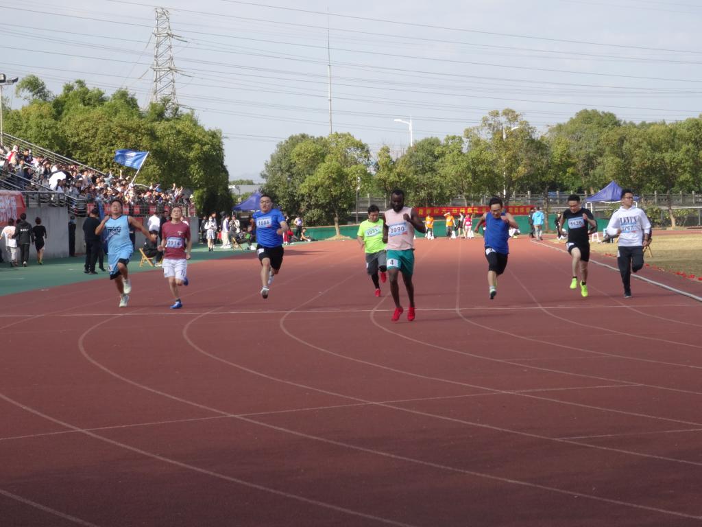 留学生还在跑步、标枪、跳远等田径项目参赛并获得好成绩,赛场上不时留下他们奋力拼搏的身影。此外,beat365中文官方网站的外教们也积极报名参加了运动会比赛项目,他们和中国老师们一起跳绳、一起参加毛毛虫竞速比赛,展现了浓浓的“国际范儿”,也体现了中外老师团结合作的团队精神,来自加纳的外教ADOFO MICHAEL ADJEI更是在教工甲组男子100米决赛中获得第一名的好成绩。