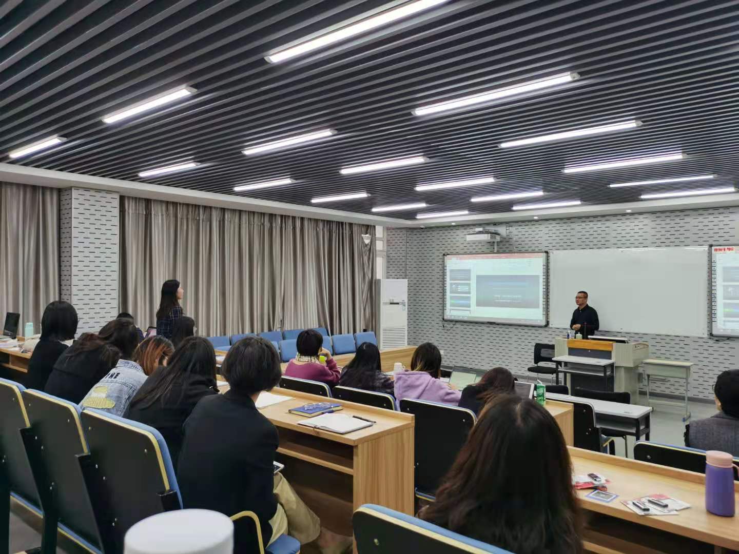 2020年11月23日下午,中国人民大学历史学院杨祥银教授在beat365中文官方网站201教室为beat365官网师生做了题为《口述历史与中华文化国际传播》的学术讲座。叶苗院长、林爱菊书记、部分专任教师及2020级汉语国际教育专硕点全体学生参加了这场讲座。讲座由吴之欧副院长主持。