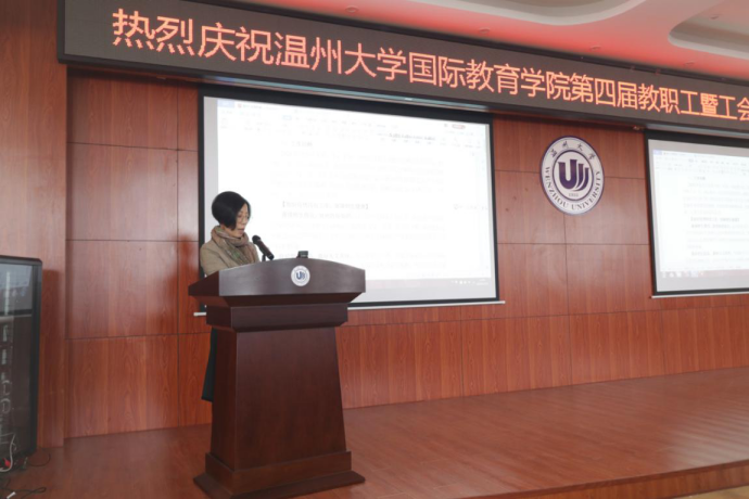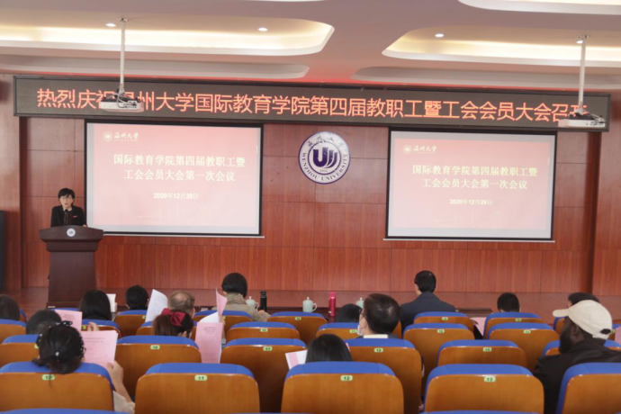 12月29日下午,beat365中文官方网站在国际楼203报告厅召开beat365中文官方网站第四届教职工暨工会会员大会。会议由学院党总支书记林爱菊主持,全院教职工参加会议。