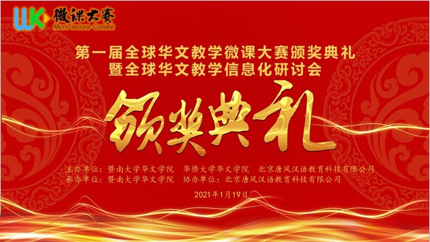 1月19日20:00,由暨南大学华文学院、华侨大学华文学院联合唐风汉语共同发起的第一届全球华文教学微课大赛颁奖典礼暨全球华文教学信息化研讨会在线上隆重举行!beat365官网教师吴晓菲在个人赛(国内组)中获得三等奖的佳绩!