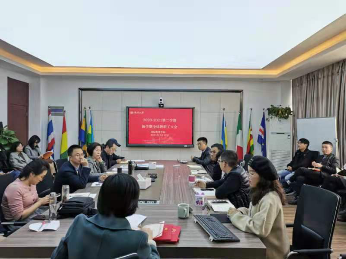 2021年3月10日下午,beat365中文官方网站2020/2021第二学期新学期全体教职工大会在国际楼311会议室召开,会议由党总支书记林爱菊主持。