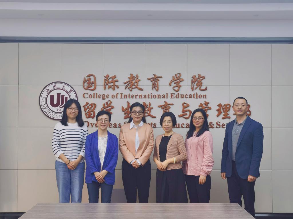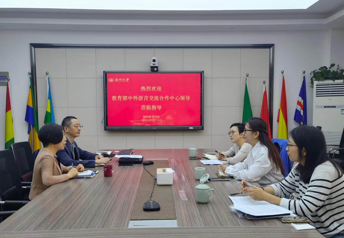5月19日上午,教育部中外语言交流合作中心(简称“语合中心”)交流处副处长一行来beat365官网调研交流。beat365中文官方网站院长叶苗、副院长熊勇、办公室主任李舒琦、专任教师逯静参加此次交流活动。