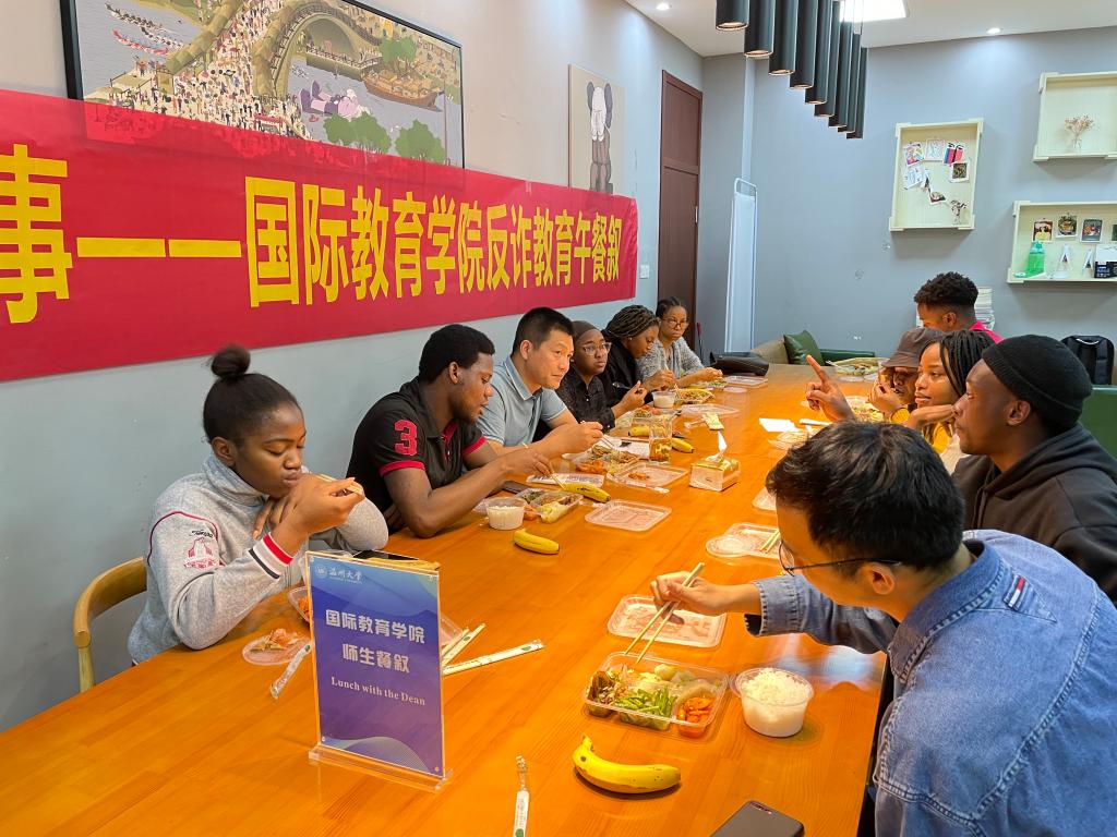 此次反诈教育午餐叙圆满结束,达到了预期效果。据悉,beat365中文官方网站已通过签署承诺书、拍摄亲历者自述的防诈骗英文访谈节目、发放防诈骗宣传材料、社区民警防诈骗宣传讲座以及公寓辅导员走访等多种方式让国际学生对诈骗有全面的了解,使安全意识入心入脑。