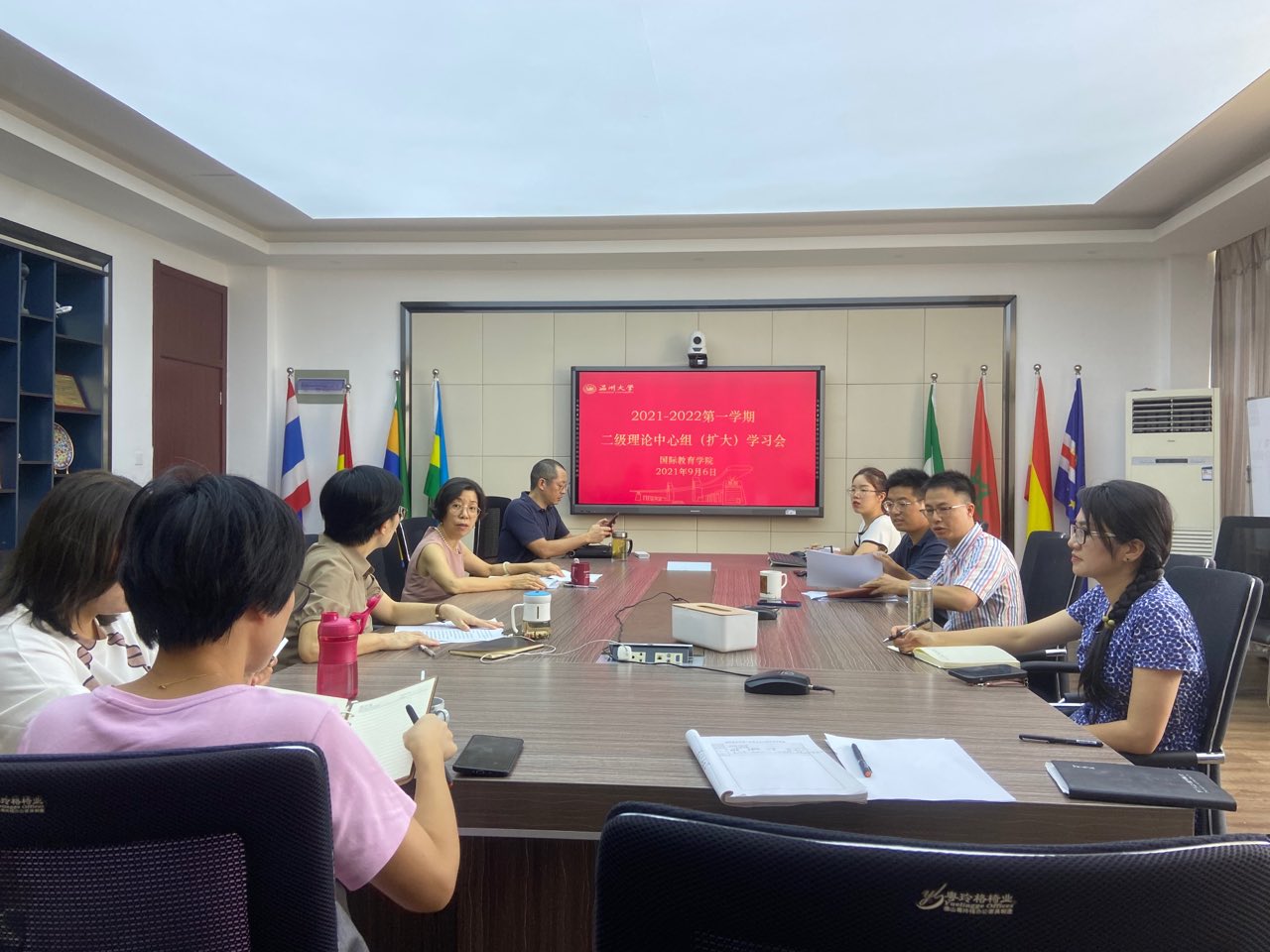 9月6日下午,beat365中文官方网站在北校区国际楼311会议室召开二级理论中心组学习会议,学院班子成员、党总支委员、党务秘书、教研室主任、科长参加了会议,党总支书记林爱菊主持。