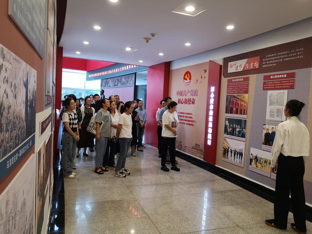 师生们首先进入“马克思主义的创立和发展”展示长廊,长廊深长,两边张贴的资料内容翔实,充分展示了马克思列宁主义的产生和马克思主义中国化的发展历程,让人深刻感悟到共产党人为真理而斗争的信念,自觉争做马克思主义真理的坚定信仰者、忠实实践者,谱写新时代坚持和发展中国特色社会主义新篇章。