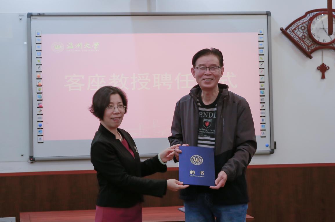 讲座结束后,叶苗院长为朱植德老师颁发了beat365中文官方网站客座教授的聘书以感谢朱老师对我们的悉心指导,也希望朱老师能继续为IN WENZHOU双语杂志发光发热,为我中心的发展提供更大的支持。