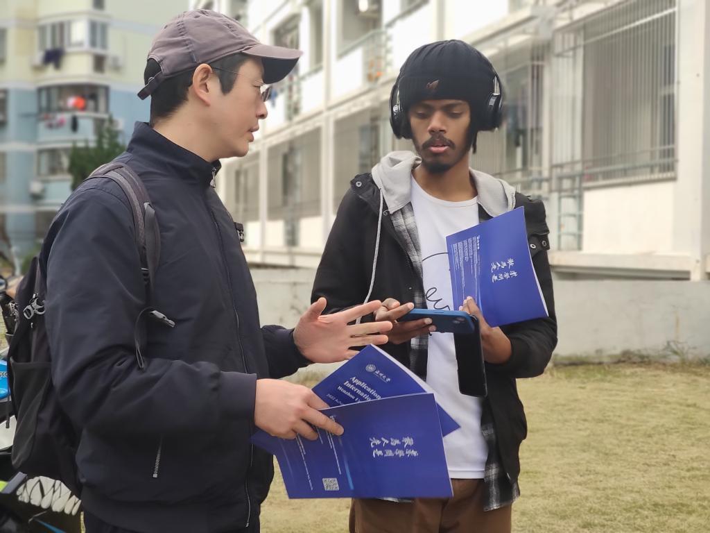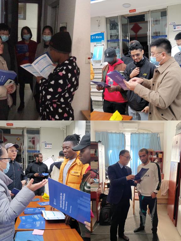 党员们手里拿着《Application Guide for Inernational Students Wenzhou University》小册子,深入国际生寝室,向国际生详细介绍了beat365中文官方网站国际生的招生政策,涉及硕士项目、本科项目的招生情况以及相关学院、专业名称、学制、授课语言等;讲解了国际生就读的费用情况,包括学费、申请费、住宿费、体检费、保险费、居留许可费;告知了中国政府奖学金、国际中文教师奖学金、浙江省政府奖学金、beat365中文官方网站国际学生校长奖学金等奖学金情况;耐心传达了资格申请的申请方式,申请时间以及申请所需材料。