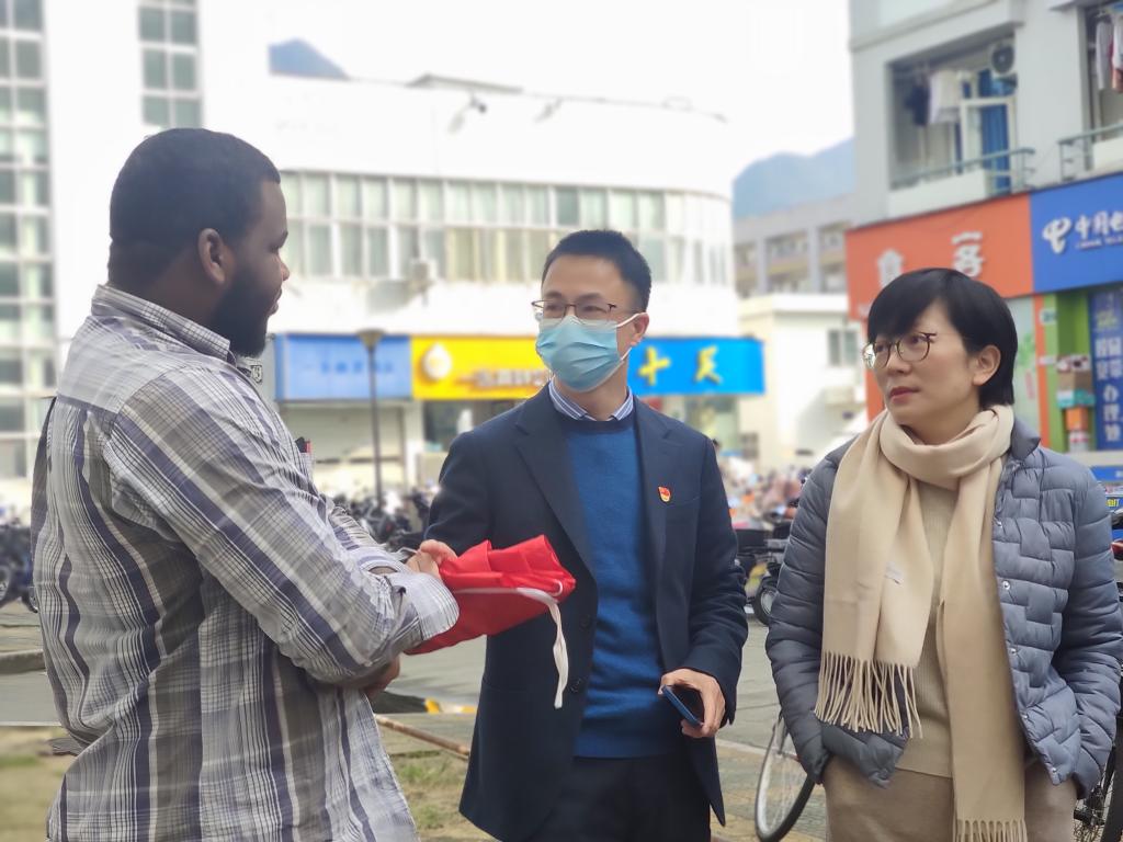12月22日支部党员们在党总支书记林爱菊带领下奔赴留学生宿舍D区,走进寝室,向国际学生宣传beat365中文官方网站国际学生招生政策,把招生简章发放到国际学生手中,现场讲解,进行了一场别开生面的主题党日活动。