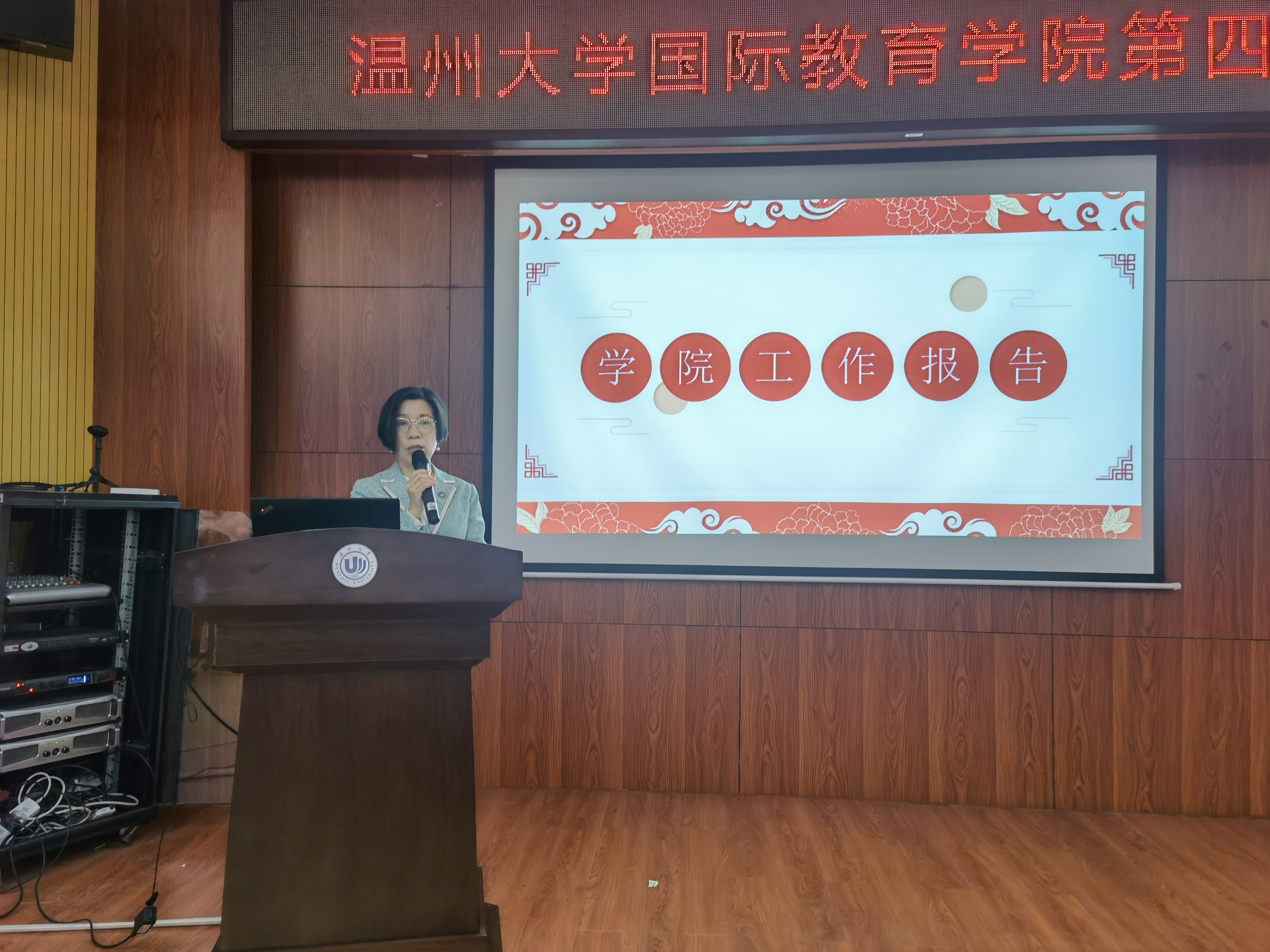 会议在庄严的国歌声中拉开序幕。学院院长叶苗作《学院工作报告》、《学院年度财务决算报告》,对2021年学院工作进行总结,2022年学院工作进行展望。叶苗院长指出,2021年以来,学院完成“十四五”规划编制工作,谋划来华留学教育发展;申请教育质量认证,做好对标建设;筑牢疫情防控,实行常态化管理;规范招生录取工作,拓宽宣传途径;强化学生日常管理,促进全面发展;规范日常教学管理,提升教学质量,促进学科建设发展,坚持教研并重;加强师资队伍建设,提高教学水平。但也存在一些问题,未来学院将齐心协力,力克时艰,全力推进来华留学教育的提质增效,夯实“留学温大”工程。学院工会主席林爱菊作《工会工作报告》。