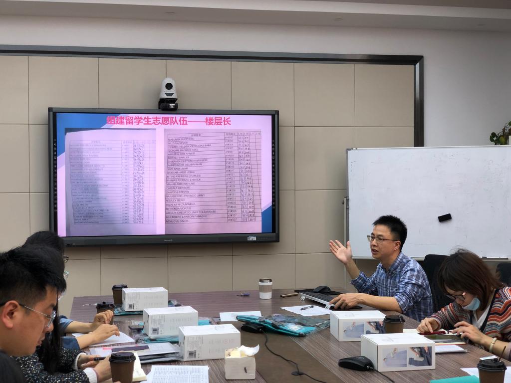会上,方建晓副书记就疫情防控工作、学费催缴、上课考勤、留学生校友库的建立等工作做了介绍。首先,方建晓副书记强调在全国疫情仍多发频发的阶段,要再次严肃疫情防控纪律,做好留学生疫情防控工作。其次,留学生学费缴纳问题仍需留管部和学院共同努力,进一步完成本学年的催缴工作。第三,对上课考勤、宿舍管理、留学生毕业升学等日常工作仍需关心,特别如何提高留学生留温率,需要我们进一步思考。最后,方建晓副书记对本学期留学生工作做了安排。各学院的留学生专员也针对留学生管理中存在的实际问题做了交流,特别是在疫情下如何做到管理有力度,教育有温度等问题提出许多意见建议。