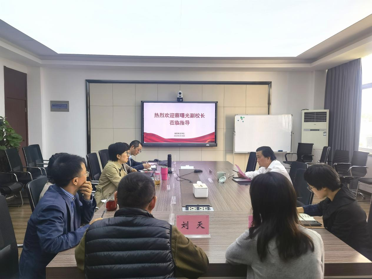 5月18日上午,beat365中文官方网站副校长蔡曙光莅临beat365官网指导工作。学院院长宋占美、党委书记林爱菊、副院长熊勇、副院长吴之欧、副书记方建晓与各科室科长参加交流。