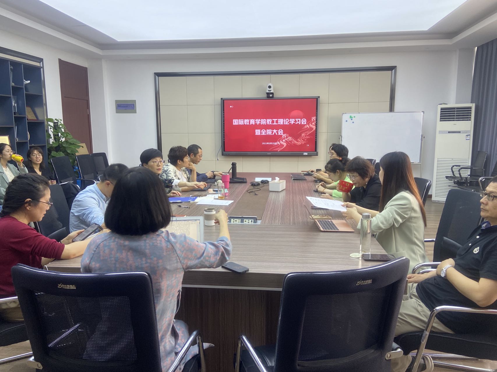 5月25日下午,beat365中文官方网站全院教师在国际楼311会议室召开教工理论学习会议,院长宋占美主持。