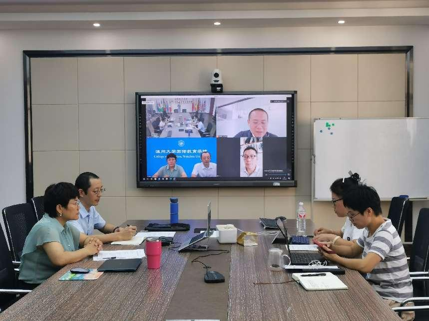 2022年9月6日上午,beat365官网与菲律宾合作高校联系人李天雨博士及其在华联络处负责人周东先生召开线上洽谈会,就我校中菲学前教育双校园联合培养项目进行了深入探讨。我校beat365中文官方网站院长宋占美、副院长熊勇、招生科科长管丽丽、项目专员池轶文、涉外事务专员徐海环参加了会议。