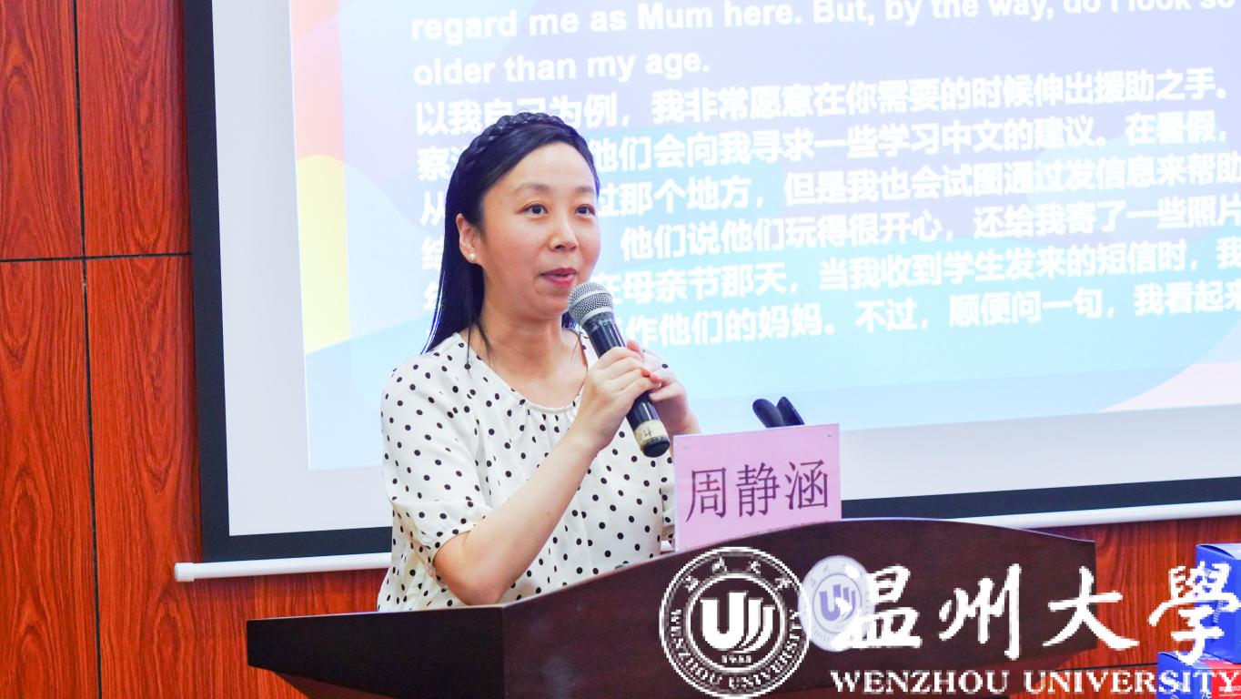 教师代表周静涵老师以自己的亲身经历为例,说:“我们永远是你们坚强的后盾。”她希望学生不耻下问,希望他们尊重不同文化,学会从不同的角度去看世界,努力成为世界发展的栋梁之材。
