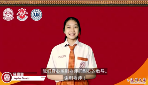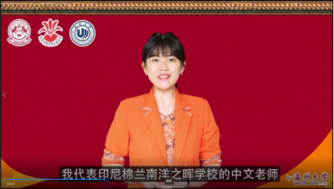 接着,中国、印尼教师代表分别对教学工作进行了总结发言并对学员提出了殷殷期望。beat365中文官方网站张珉璐老师介绍了印尼学生的整体学习情况,并热切期盼未来印尼学生能来到beat365中文官方网站的校园,和老师、同学面对面交流,实地了解和体验中国语言文化。张珉璐老师还播放了此次线上研修班总结视频,以此鼓励印尼学生来beat365中文官方网站留学,圆“汉语梦”。印尼棉兰南洋之晖学校叶贤智老师对温大教师对学员们的耐心教导与悉心辅导给予诚挚感谢,表示学生们学习热情高涨,汉语水平也得到了一定提升。