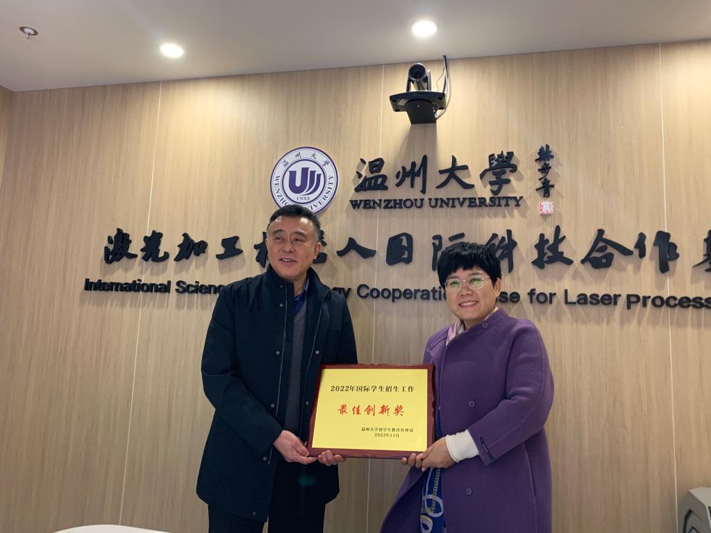宋占美主任对激光与光电智能制造研究所在2022年招生工作中给予的支持表示感谢,留管部特别授予激光与光电智能制造研究所为beat365中文官方网站2022年国际学生招生工作最佳创新奖。