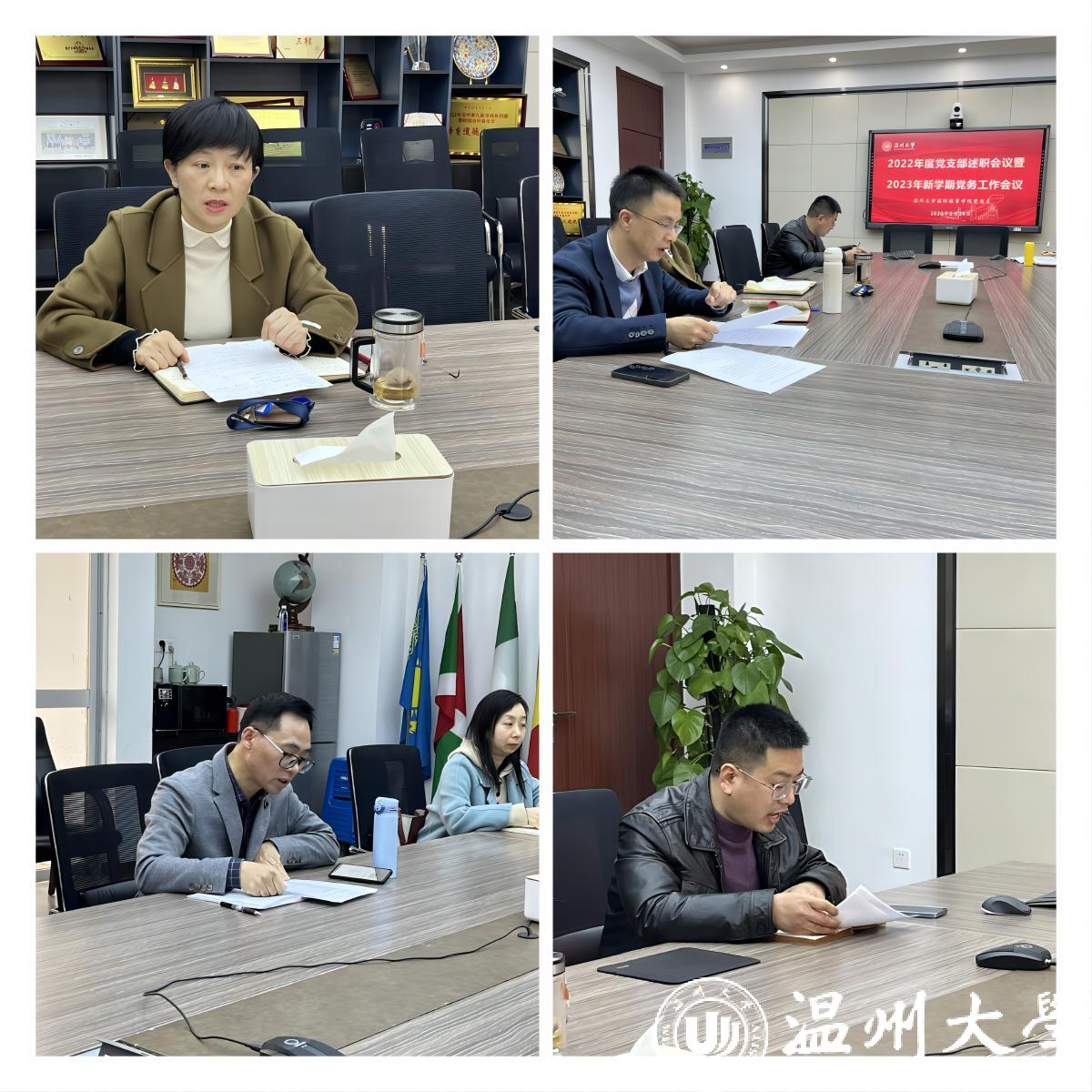 为深入贯彻落实党的二十大精神,进一步压实支部书记履行基层党建主体责任,切实提升基层党建工作水平。根据校党委组织部《关于做好2022年度党支部书记述职评议工作的通知》精神。2月24日下午,beat365中文官方网站党总支组织开展了2022年度党支部述职评议会议暨2023年新学期党务工作会议。会议由学院党总支书记林爱菊主持,各支部支委参加了本次会议。