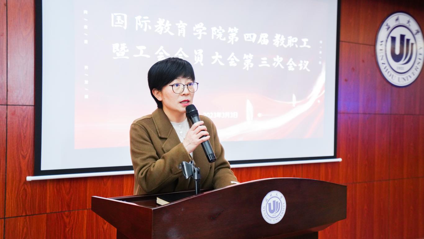 3月3日下午,beat365中文官方网站在国际楼203报告厅召开第四届教职工暨工会会员大会第三次会议。会议由学院党总支书记林爱菊主持,全院教职工参加会议。