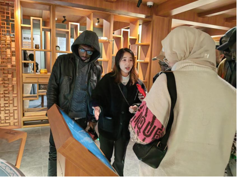 3月29日下午,beat365中文官方网站国际学生国情教育名师工作室暨“走进温州”开启了本学期系列活动的第一站——永嘉学派馆。来自俄罗斯、韩国、意大利、英国、尼日利亚、泰国、越南、孟加拉国、土耳其、摩洛哥、津巴布韦、博茨瓦纳、埃塞尔比亚、刚果、肯尼亚、赞比亚、土库曼斯坦等24个国家和地区的留学生们一起了解并学习了永嘉学派的发展历程、主要代表人物及其思想和影响等。留学生们兴致勃勃,非常认真地投入,也纷纷表示很开心能够有这样的机会近距离接触博大精深的中国传统文化。