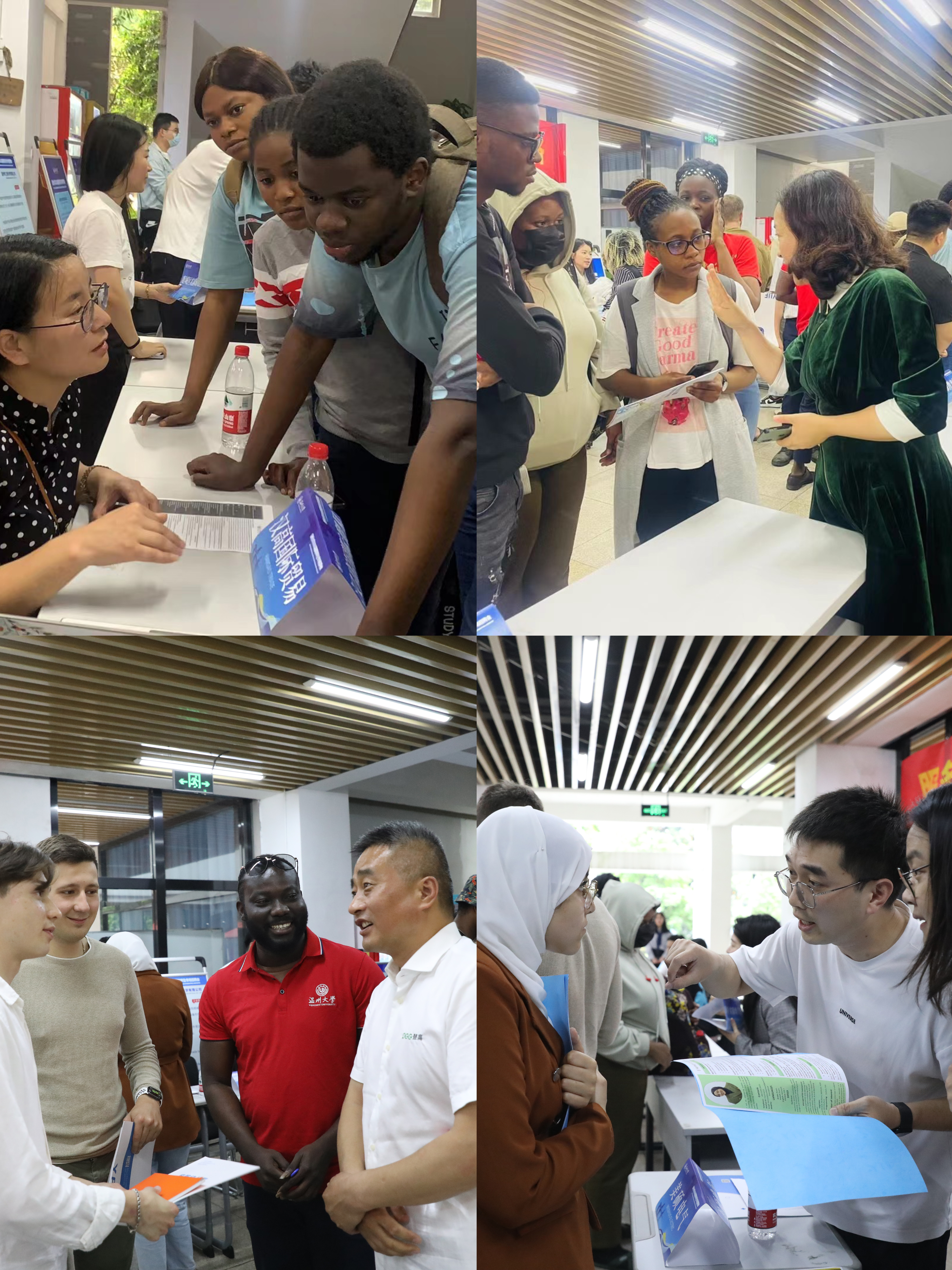 4月19日下午,beat365中文官方网站2023届国际学生专场招聘会在beat365中文官方网站成功举行,来自津巴布韦、尼日利亚、俄罗斯、葡萄牙等30多个国家的100余名国际学生参加,登高电气有限公司、浙江晶盛机电股份有限公司、浙江美硕电气科技股份有限公司、文成县悦阳幼儿园等17家单位参展,提供机械工程、产品销售、客户经理等50余个外国人就业岗位。