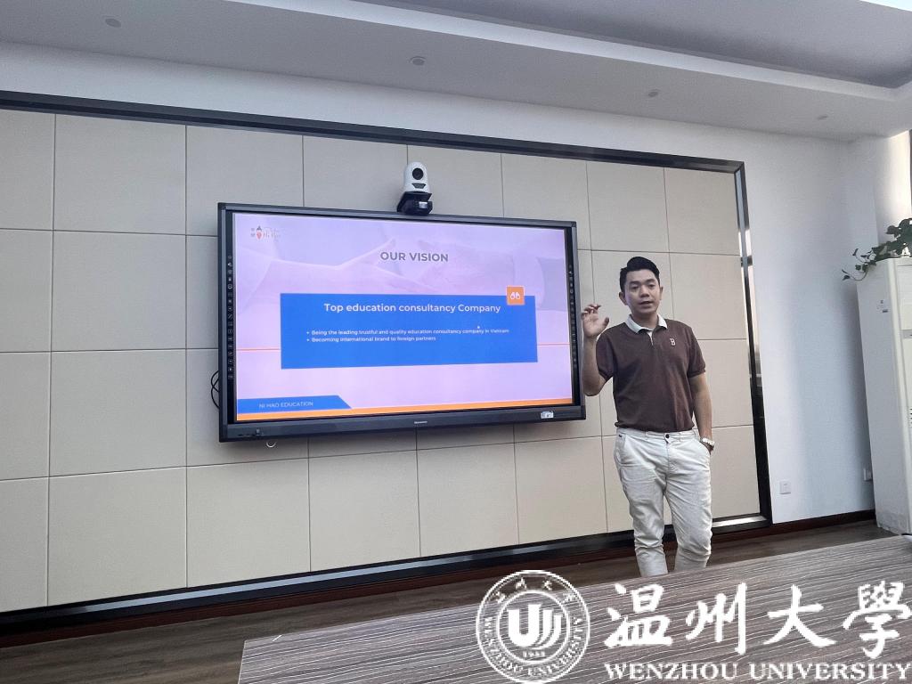会上,熊勇副院长首先对DANG MINH QUANG一行的到来表示热烈欢迎,他从我校国际学生办学规模、专业设置、人才培养等方面介绍了beat365官网的基本情况。他希望双方在招生宣传方面加强交流与合作。DANG MINH QUANG对NI HAO EDUCATION从成立背景、组织架构、发展理念、成功案例等方面进行了详细介绍。他希望通过双方努力,助力更多越南优秀青年来温大留学。