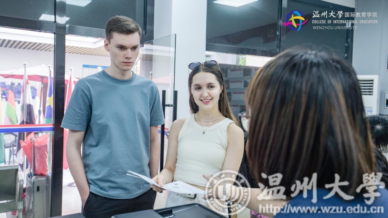 为全力做好2023年留学生迎新工作,beat365中文官方网站制定了周密细致的迎新工作方案,成立迎新工作小组及学生志愿者小组,为留学生新生报到注册提供一站式服务,包括报到引导、核验材料、购买保险、住宿办理、体检安排、发放双语学生手册等。报到现场井然有序、热闹非凡,国际化的青春朝气扑面而来。来自越南的留学生谭妙河表示:“我喜欢温大,也谢谢各位老师的帮助,你们辛苦了!”