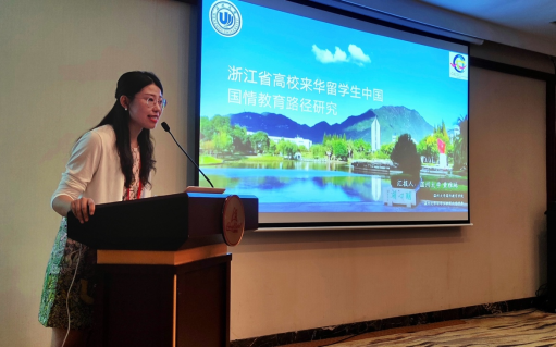 beat365官网教师黄雅琳以《浙江省高校来华留学生中国国情教育路径研究》为题在分论坛二中做报告,围绕“如何在高校留学生国情教育中凸显浙江特色”、“如何挖掘浙江历史资源中所蕴含的优秀地方文化资源”、“如何向留学生深入阐释浙江精神新时代价值和内涵”、“如何将浙江精神融入留学生国情教育中”等核心问题,提出建构国情叙事理论体系、构筑面向来华留学生的国情育人体系、完善现有课程设置,改进教学模式、加强跨学科协同联动,将研究成果转化为教材、加快建立专业教师队伍,打造来华留学生国情教育共同体、推动国情教育实践基地建设,加速成果产出等。