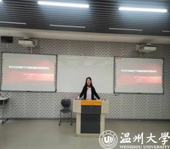 10月11日下午,安然教授应邀在201报告厅为师生作学术讲座。安教授以《多元文化视域下中国国情教育探索研究》为题,深入浅出得介绍了中国国情教育的实施背景、战略意义。她还通过分享自己在教育和实地考察中的真实见闻,带领全体师生沉浸式体验了多元文化教育的内涵,加深了大家对文化认知的理解。同时,安然教授针对如何加强对外教师师德师风建设提出许多宝贵和可行的意见建议。最后,安教授分享了华南理工大学国际学生通识教育课程体系,并从国情教育的内涵、原则、方式、目的等角度,联系温州和汕头多元文化与跨文化之特质,号召广大师生积极开展多元文化视域下中国国情教育探索。
