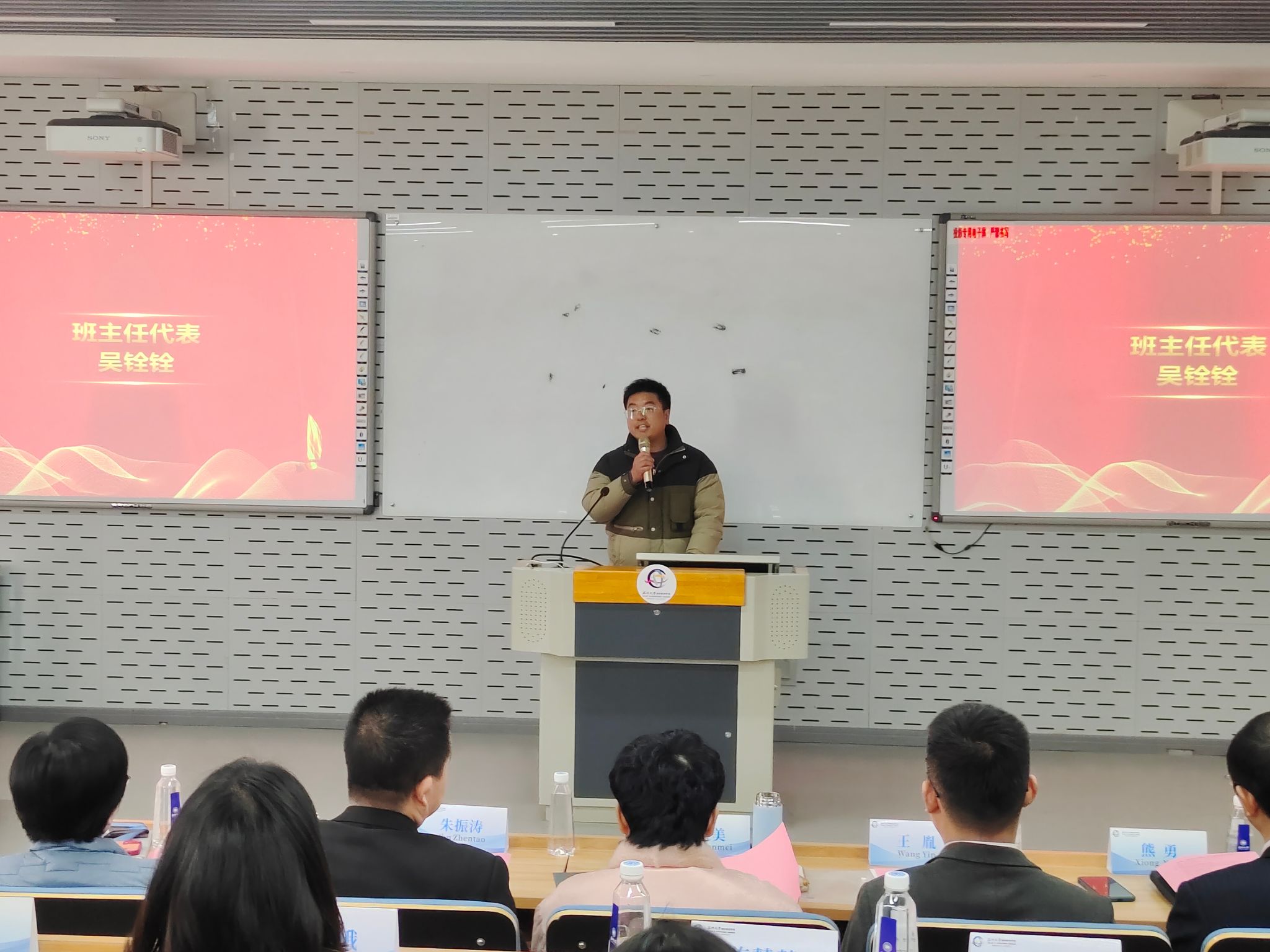 班主任代表吴铨铨用自豪、不舍、祝福三个关键词表达了他的心情与感受。他希望同学们对生活满怀希望、对未来充满理想,认真工作,踏实寻梦,成就自己,回报家庭。