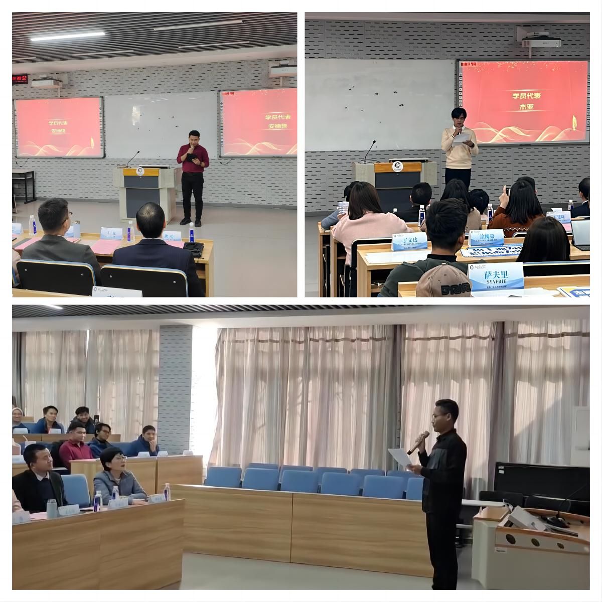 学员代表张加油感谢青山集团给予的学习机会及学院的大力培养。学员代表安德鲁分享道本次学习不仅提高了同学们的中文水平,同时也感受到了中国传统文化的独特魅力,亲身感受到中国壮丽河山的秀丽风景。学员代表杰亚说在beat365中文官方网站学习就像在家一样温暖,老师和青山总部同事们都非常关心与支持大家。同时他提到,结业并不代表中文学习的结束,而是新的起点,未来将继续努力。