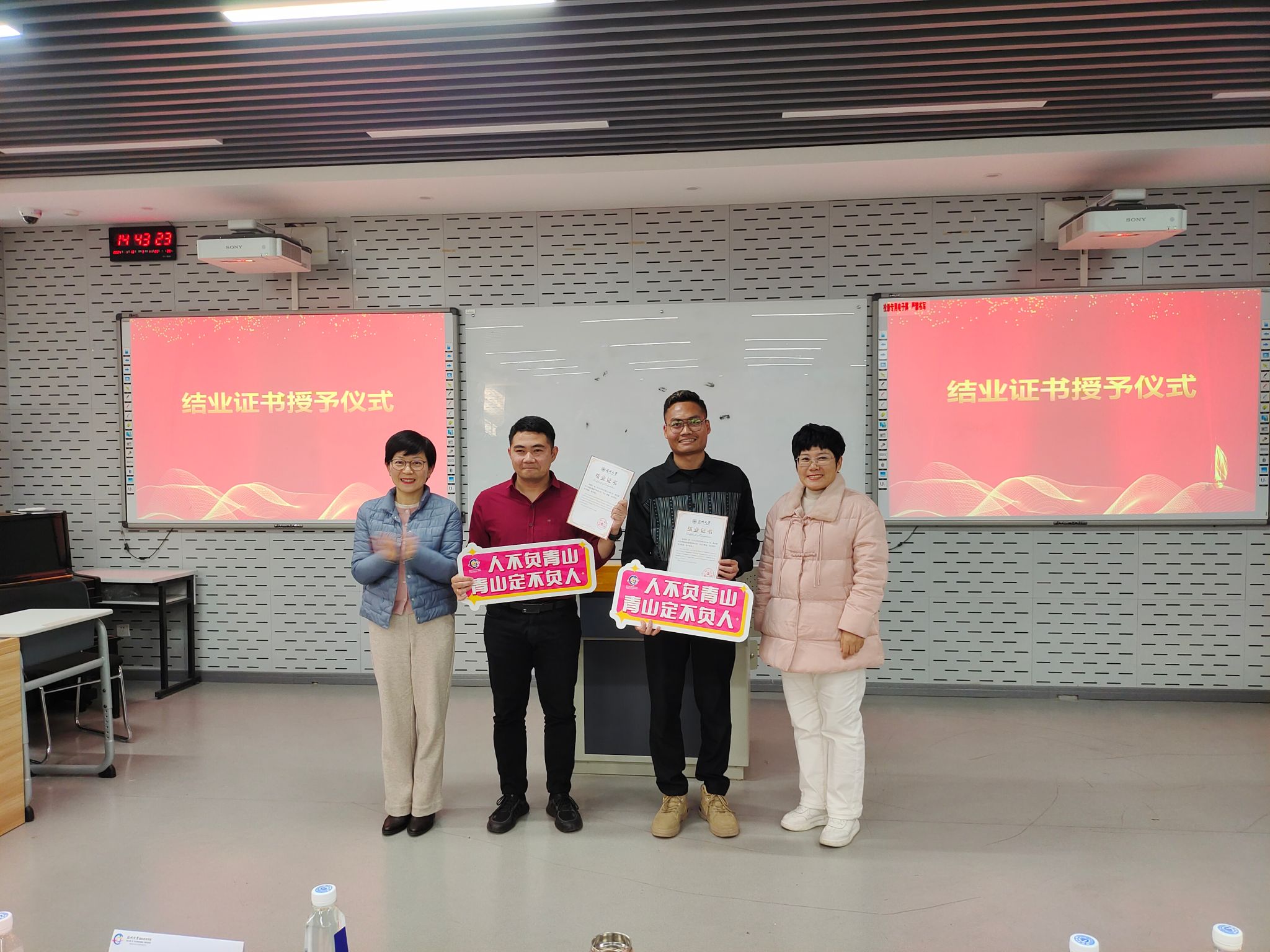 随后在全体企业领导、老师、同学们共同见证下,安德鲁和张加油作为学员代表从宋院长手上接过沉甸甸的结业证书。