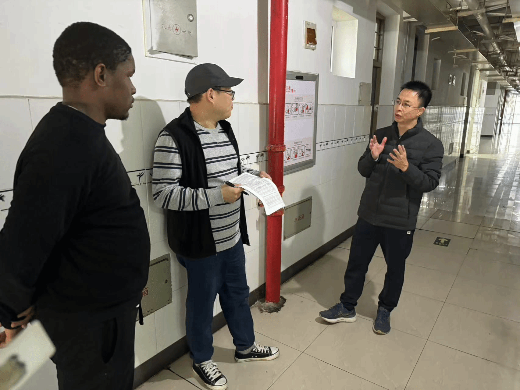 雪中送温暖,关怀暖人心。为做好2024年来华留学生的安全稳定工作,1月22日上午,beat365中文官方网站的领导老师们心系为学生们辛勤付出的保安和公寓管理的叔叔阿姨们以及校内外住宿的留学生们,开展了一场温暖的走访慰问活动。beat365中文官方网站保卫处处长孙安梭、beat365中文官方网站副书记方建晓以及辅导员老师们参加本次走访慰问活动。