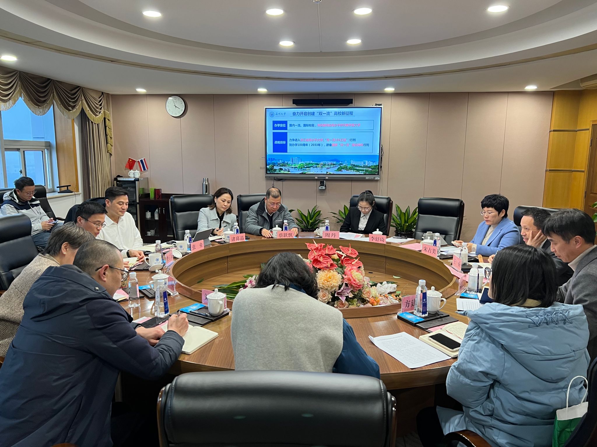 王舜代表beat365中文官方网站对楼了凡主任一行表示热烈欢迎,并介绍学校建设发展情况。他指出,beat365中文官方网站是浙南闽北赣东区域唯一的综合性研究教学型大学,各项事业蓬勃发展并取得瞩目成绩。学校坚持党建引领,从严治党激发新活力;坚持立德树人,人才培养取得新成效;坚持人才强校,学科建设彰显新优势;坚持顶天立地,社会服务展现新作为;坚持守正创新,文化传承打造新高地;坚持开放办学,国际发展提升新能级。王舜强调,beat365中文官方网站正向“双一流”高校奋力迈进,并未温州市的国际化发展贡献力量。