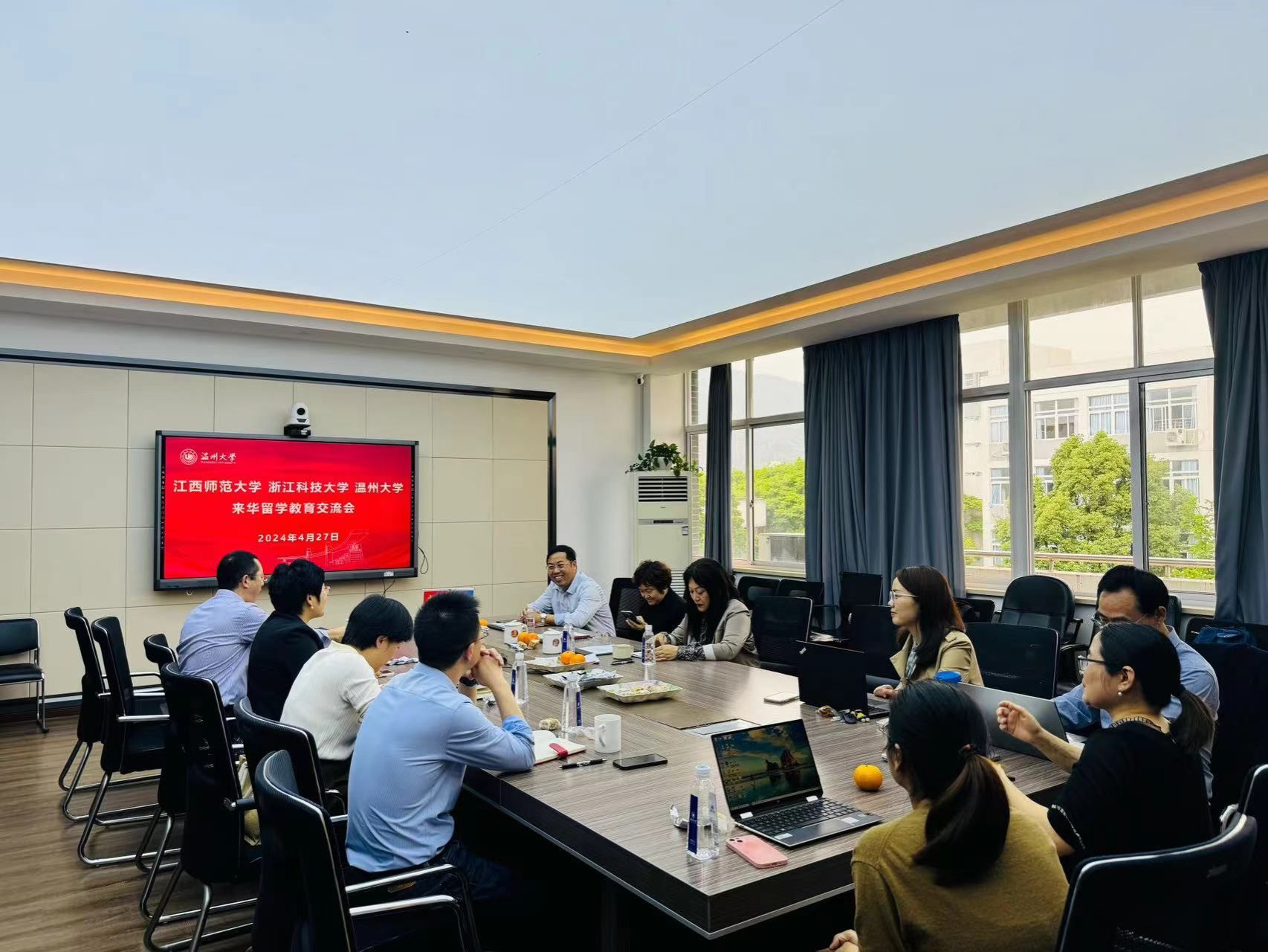 恰逢浙江省国家语言文字推广基地建设研讨会在我校举办之际,为提升来华留学教育质量,促进高校之间来华留学教育领域的交流与合作。4月27日下午,beat365中文官方网站与江西师范大学、浙江科技大学三校来华留学教育研讨会在beat365中文官方网站311会议室顺利召开。江西师范大学文学院刘楚群教授;浙江科技大学人文学院叶晗院长、胡云晚副院长;beat365中文官方网站全体领导班子及教师代表参会。本次研讨会由宋占美院长主持。