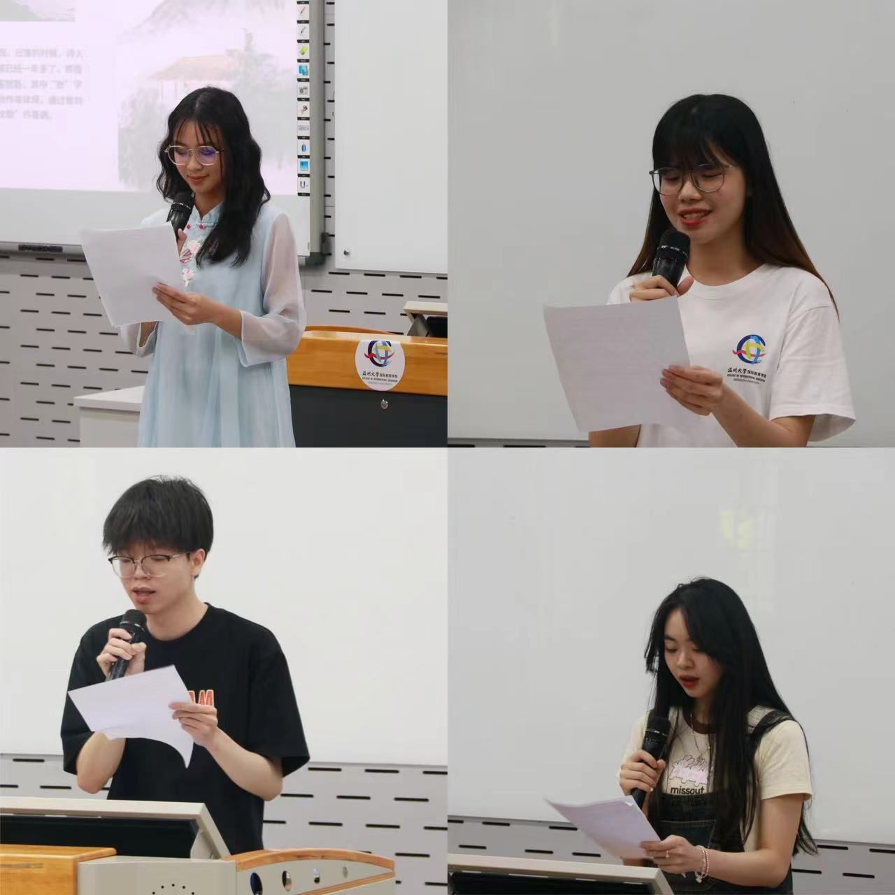 竞赛现场热闹非凡,参赛选手们个个满怀热情,以流利的中文,深情朗诵了《为祖国而歌》、《黄鹤楼》、《当时我们选择了这座城市》、《只此青绿》等一系列经典诗词,他们的朗诵声情并茂,时而激昂澎湃,时而婉转悠扬,赢得了现场观众们的阵阵掌声和喝彩。