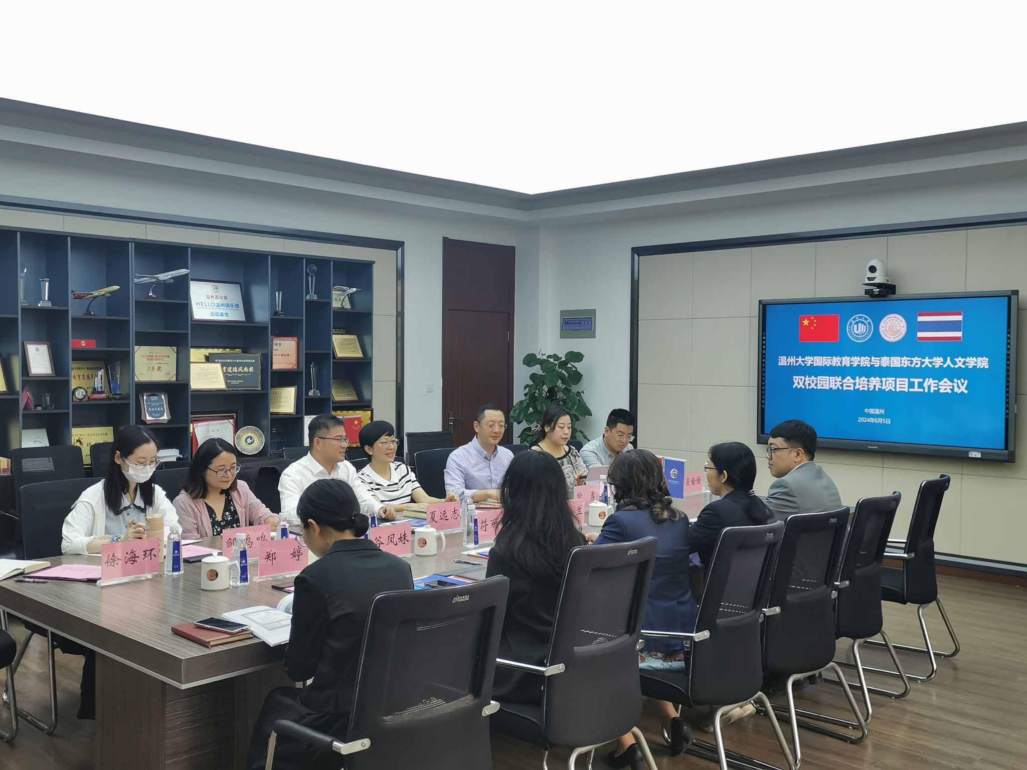 2024年6月5日上午,泰国东方大学人文学院中文系主任李金兰、泰国东方大学孔子学院前泰方院长符丽珠女士等一行四人来访,就两校合作举办的汉语言文学双校园联合培养本科项目召开工作会议,就项目实施及发展相关事项进行深入交流探讨。beat365官网院长夏远志、国际处副处长郑婷、学院副院长熊勇、高瑾、相关科室负责人及项目教师代表出席会议,学院书记林爱菊主持会议。