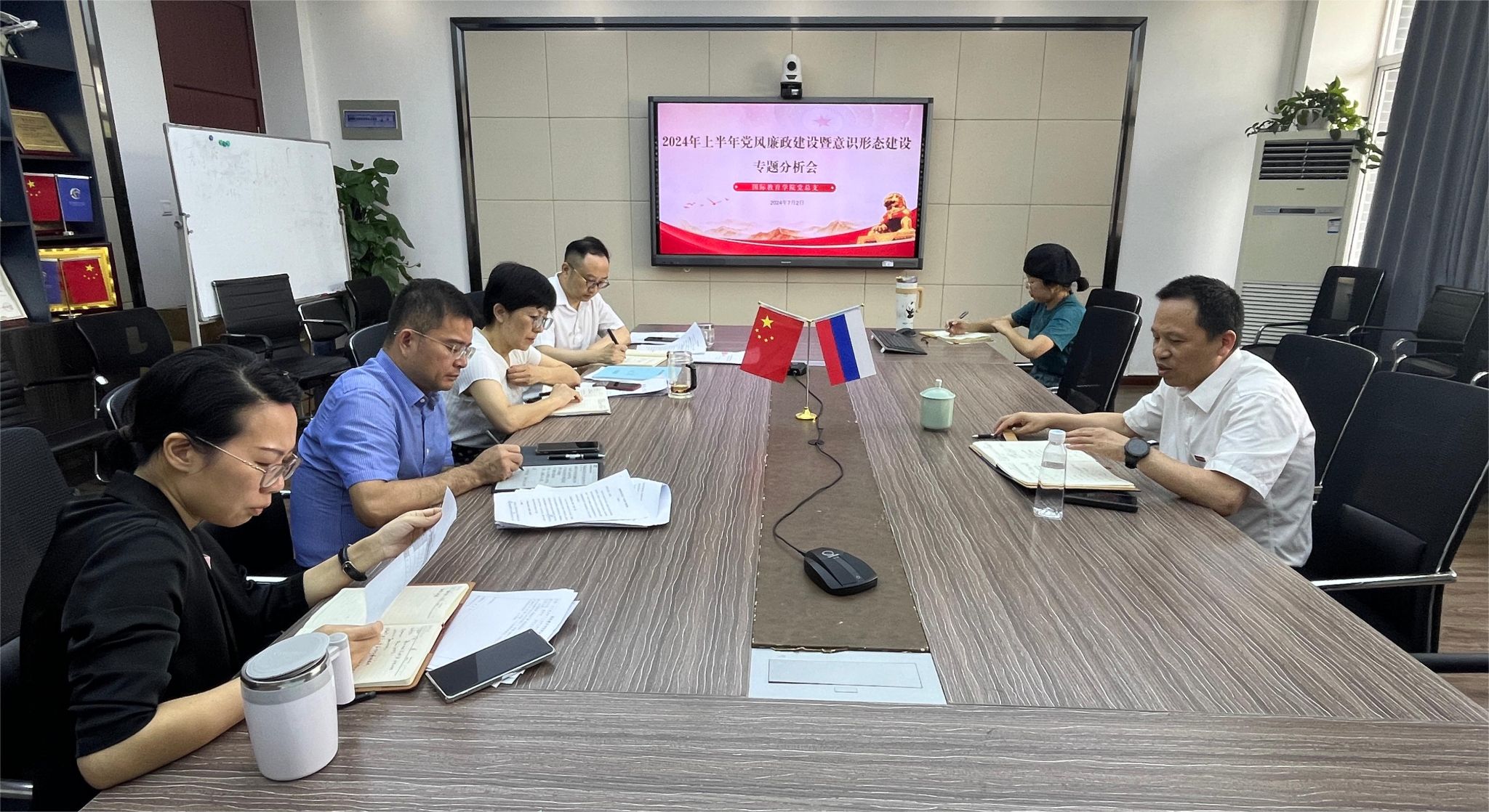 2024年7月2日下午,beat365中文官方网站在北3-311会议室召开了2024年上半年党风廉政建设暨意识形态工作专题分析会。校党委委员、副校长王舜到会指导,全体班子成员参加会议。会议由学院党总支书记林爱菊主持。