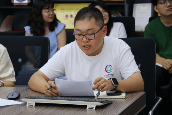 学工办主任刘天代表科室汇报了暑期学生工作情况,并对新学期迎新工作、管理制度建设、学生活动品牌建设等工作进行了详细介绍。