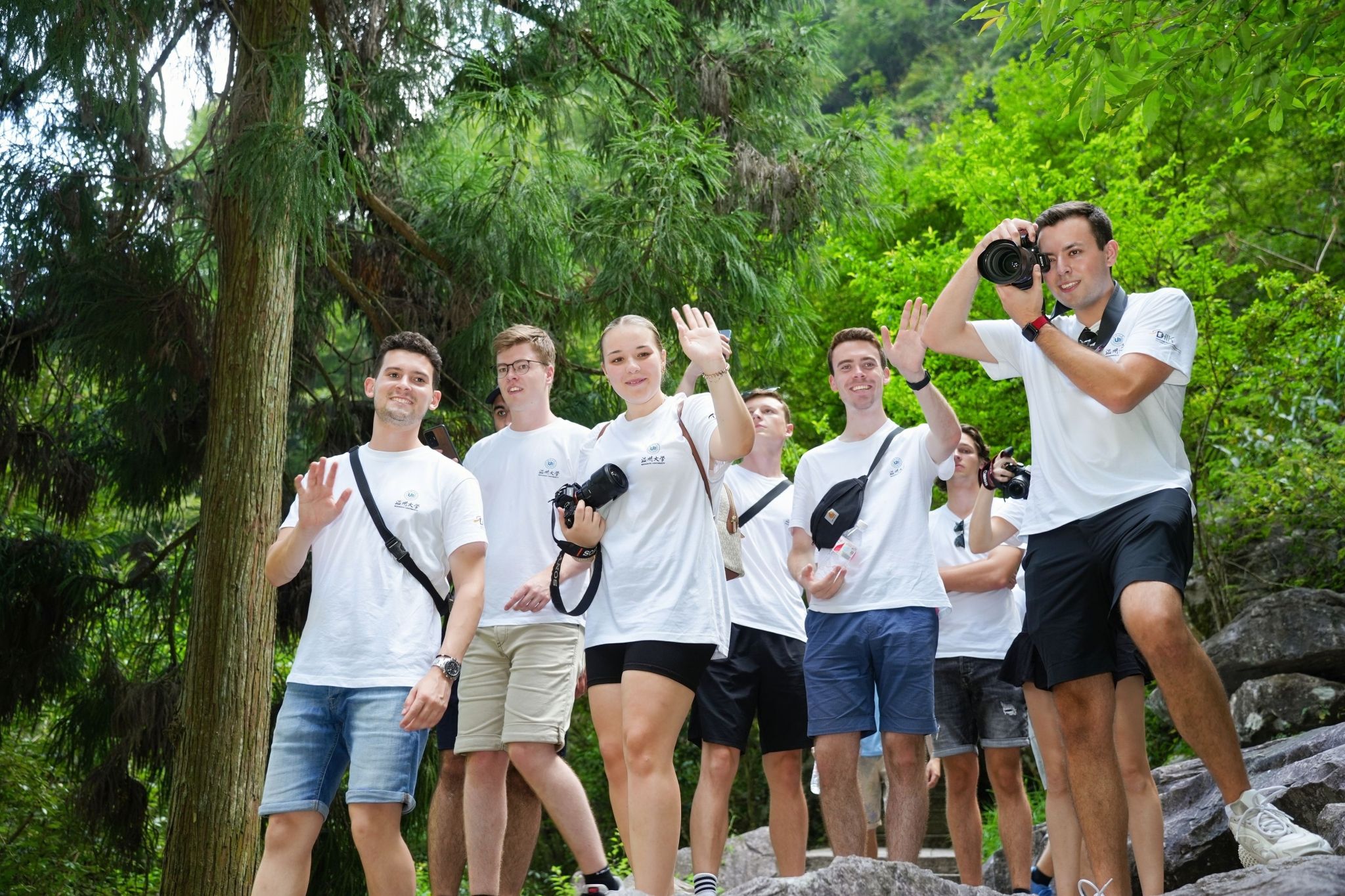 接着,学生们到达文成县百丈漈景区。这里以其壮观的瀑布群和深厚的文化底蕴著称,学生们纷纷赞叹秀美的文成山水。在曲径通幽和移步换景中,学生们流连忘返,零距离感受温州的自然之美,也加深了他们对温州人文精神的理解。