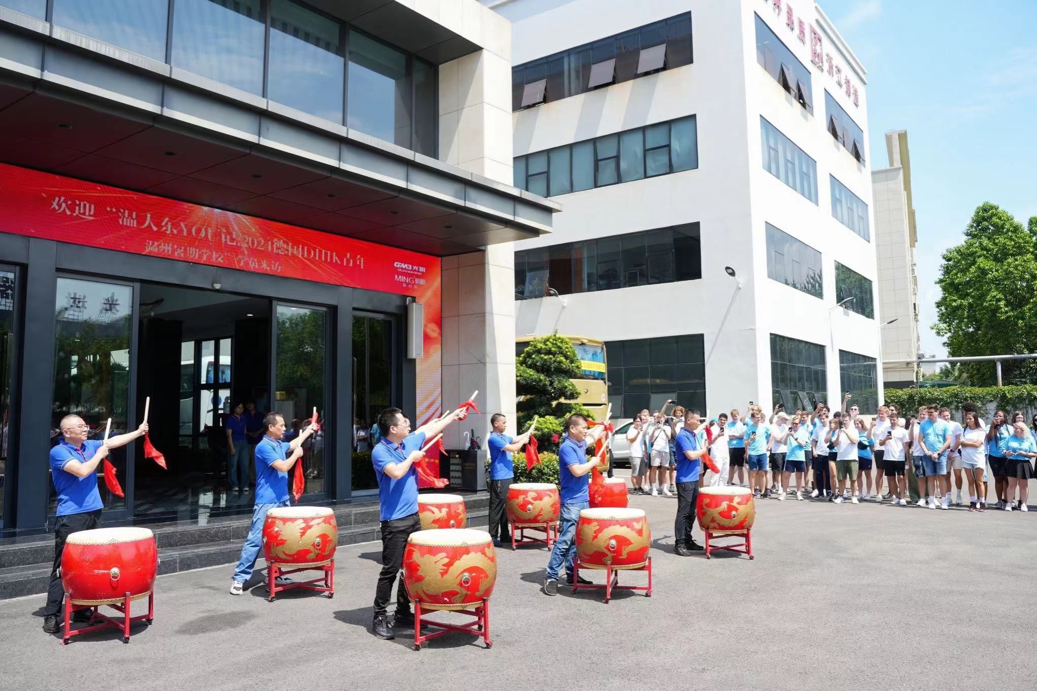 在员工热情的欢迎鼓点中,学生们来到了今天的第二站:光明集团。该集团是一家集科研、设计、制造、服务为一体的综合性企业。企业代表带领学生们参观了数码车间、精益车间和光明大学堂,展示了其先进的印刷设备和制造技术,以及在技术创新和市场竞争力方面的成就。期间,学生向企业员工积极提问,对温州企业的运营模式和企业文化有了更深入的了解。
