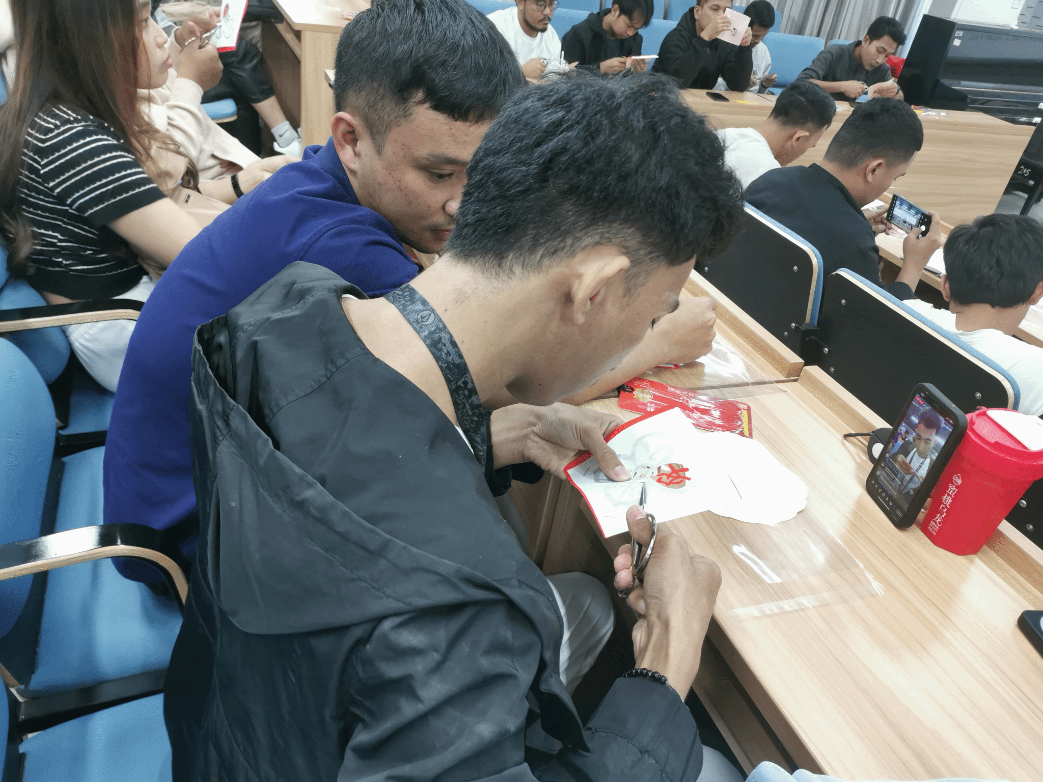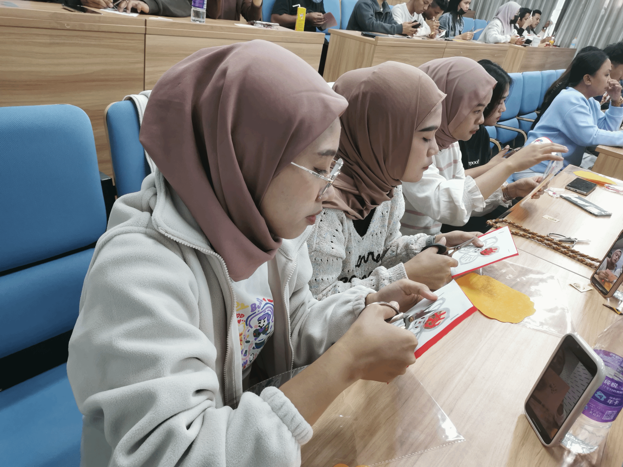 值得一提的是,活动现场还有学生利用现代科技手段,对剪纸课进行了直播。这一创新举措不仅让未能到场的同学们也能感受到剪纸文化的魅力,还吸引了众多网友的关注和点赞。