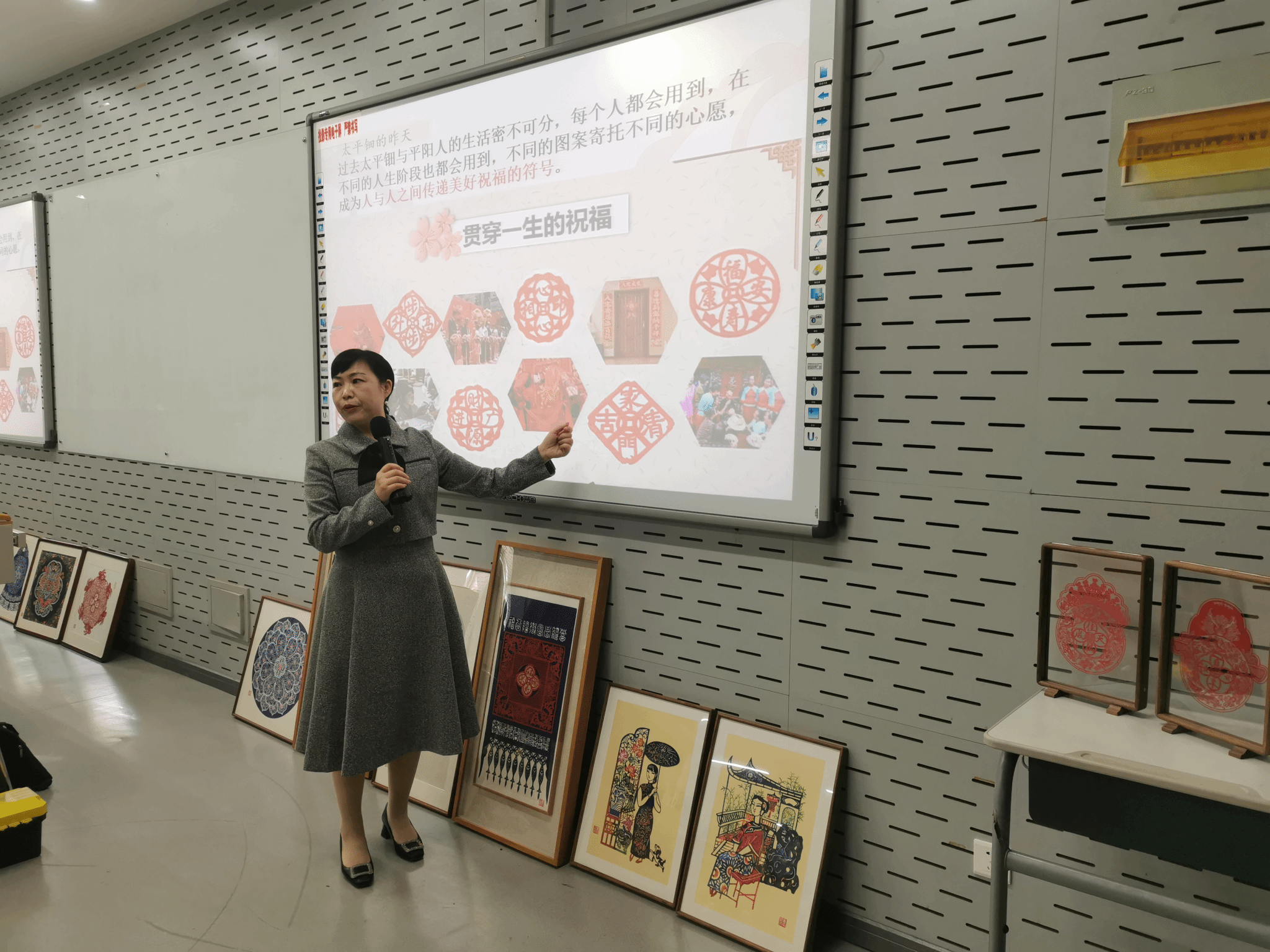 姜云老师以其多年的剪纸经验和深厚的艺术功底,创作出一幅幅精美绝伦的剪纸作品。每一件作品都细腻入微,线条流畅,充分展示了中国传统剪纸的独特韵味和艺术价值。当同学们看到这些精彩的作品时,不禁发出了阵阵“666”的赞美声,表达了对姜云老师技艺的钦佩和敬仰。