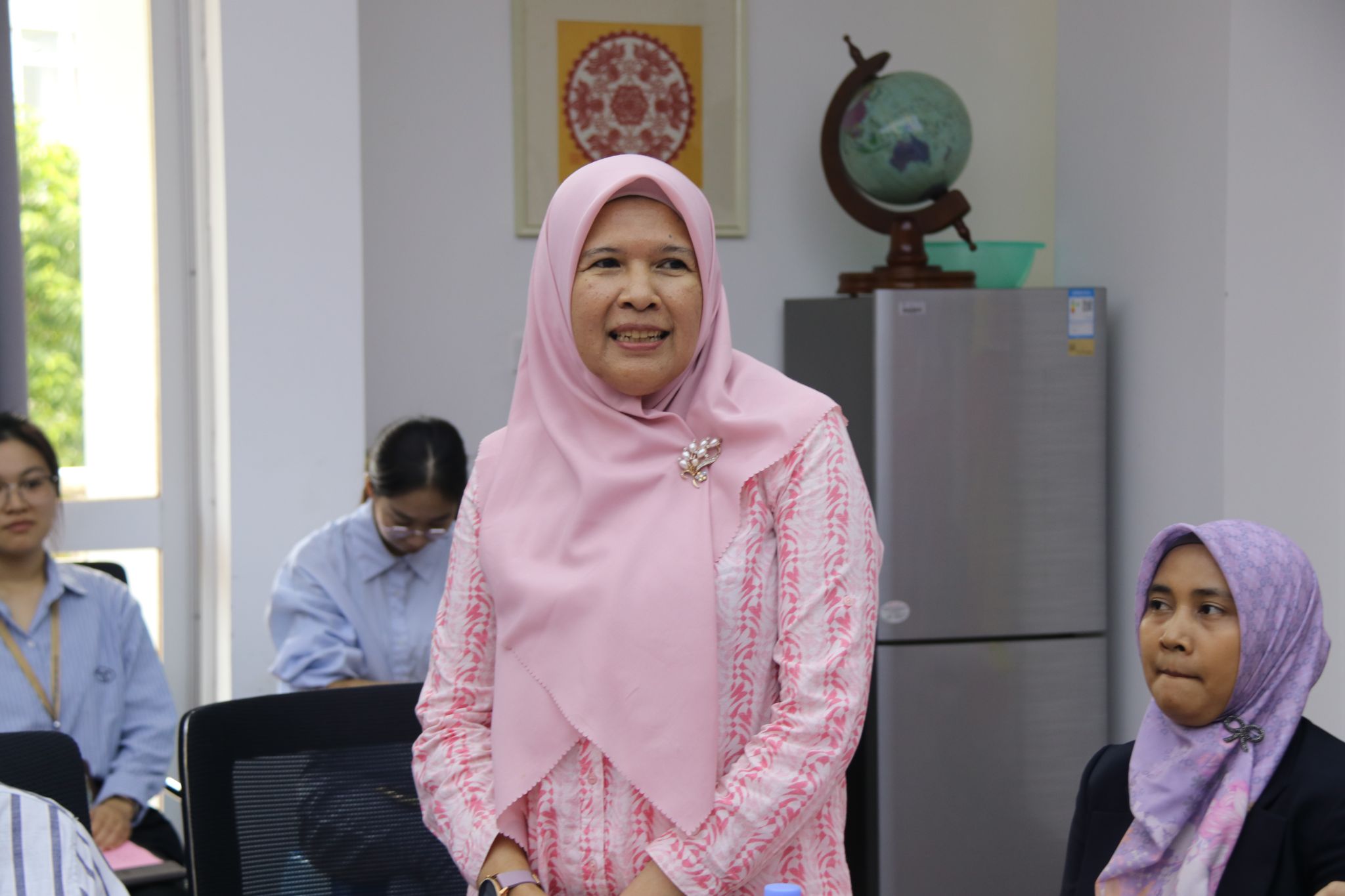 座谈结束后,代表团走访了beat365中文官方网站。在beat365中文官方网站,夏远志院长和林爱菊书记分别向代表团介绍了beat365中文官方网站的办学情况、与印度尼西亚的合作情况、以及温大“青山班”的开展情况。