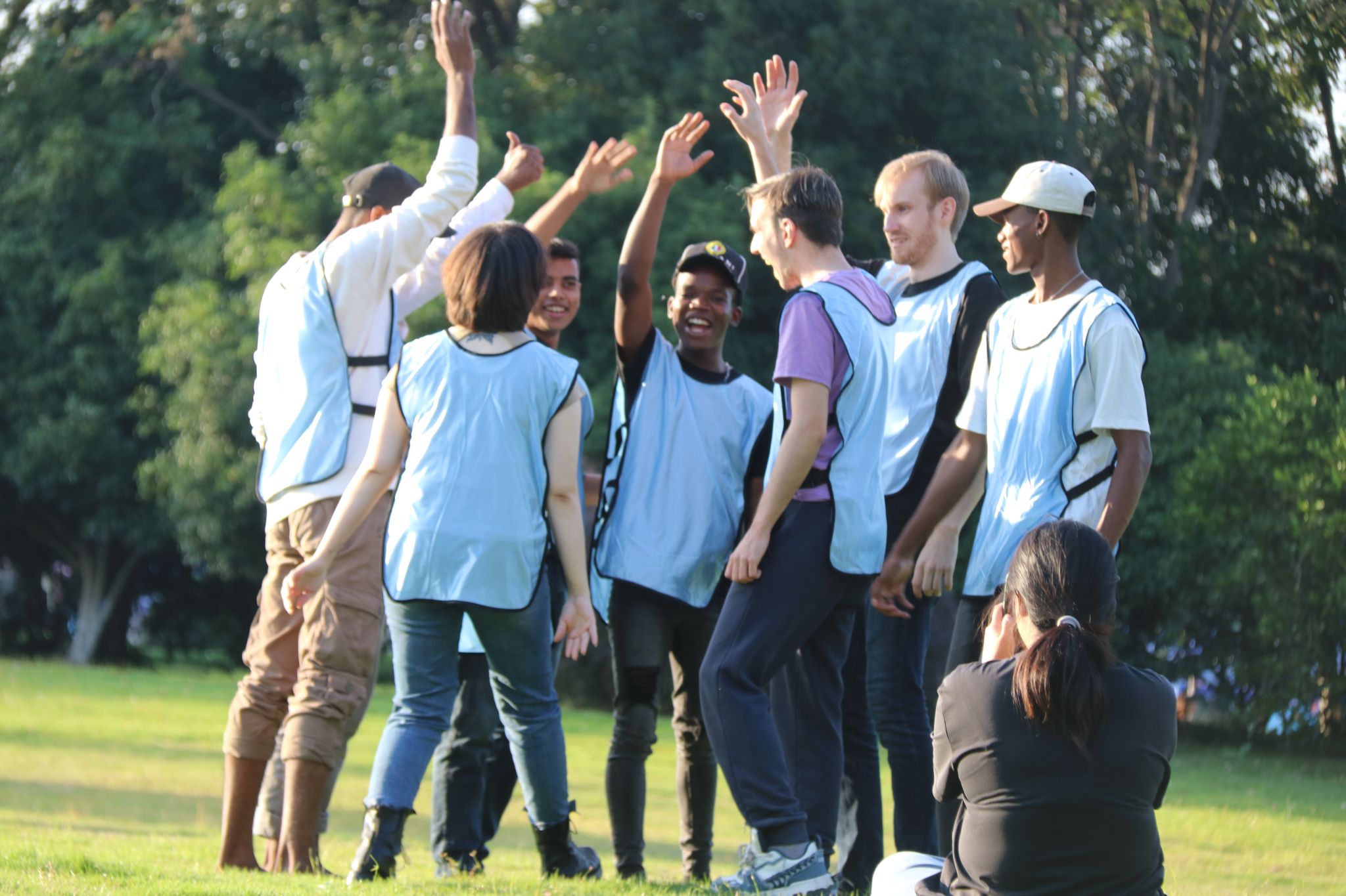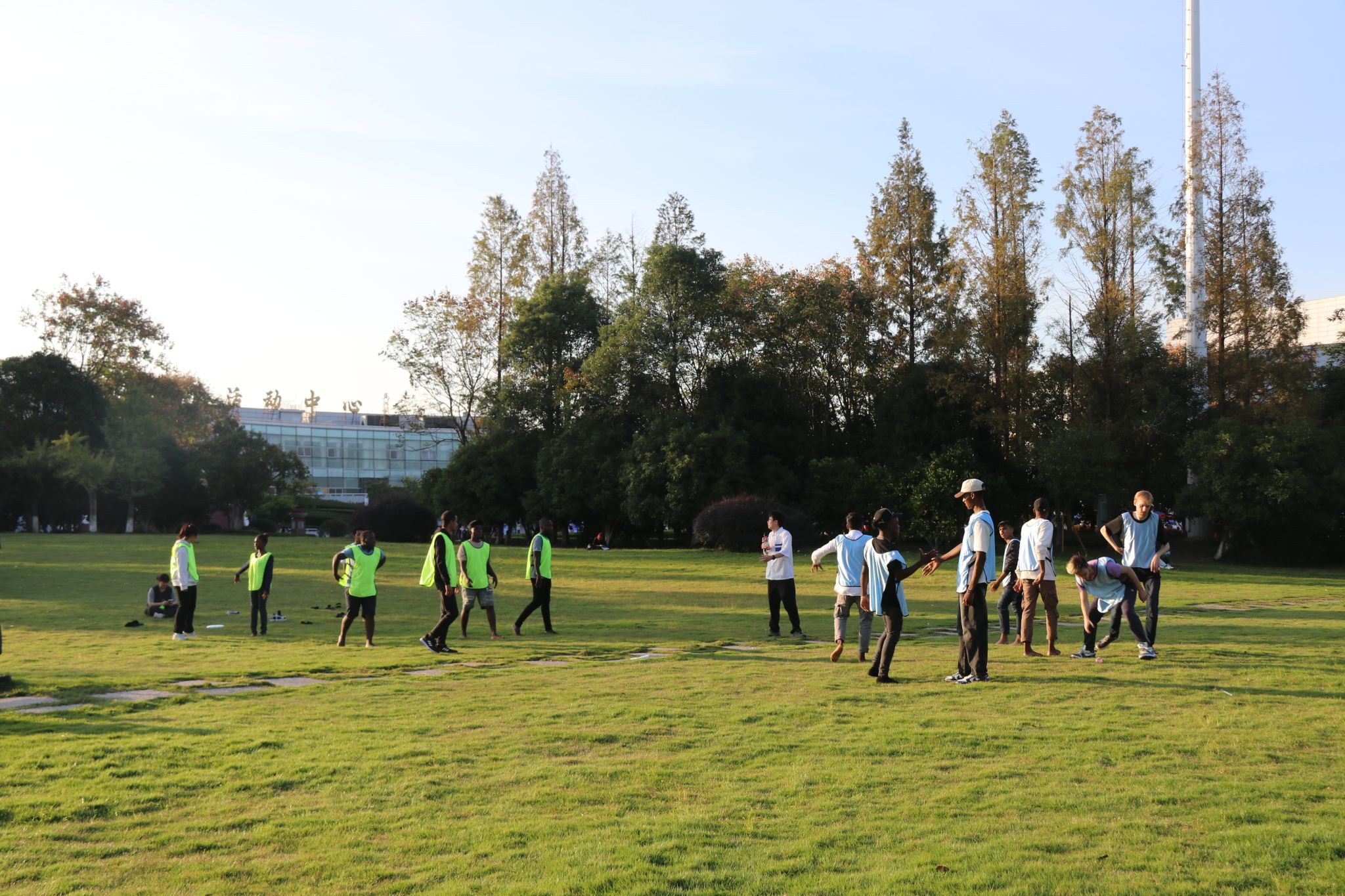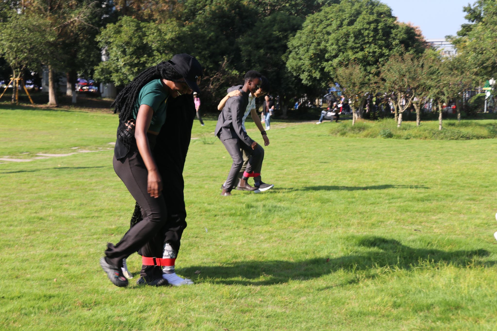 在接下来的活动中,三位医师精心设计了一系列有趣的团队游戏和互动环节。“Bingo”游戏环节,大家根据“getting to know you”问卷内容去寻找符合“喜欢跳舞的”“同月生日的”等特征的同学并让他们在上面签名,让同学们迅速了解对方并拉近了彼此的距离;“Two-Legged Race”游戏环节,同学们两两结伴,绑着腿向前冲刺,虽然过程中不乏踉跄和摔倒,但大家相互扶持、共同前进,逐渐培养起了默契和信任;还有精彩的“Capture the Flag: Campus Edition”环节,同学们分成几个小组,在草坪上展开了激烈的“飞盘大战”,飞盘在空中快速穿梭,同学们奔跑、跳跃、躲避,尽情展现着自己的活力和敏捷,不仅在运动中释放了压力,还培养了他们的竞争意识和团队协作能力。