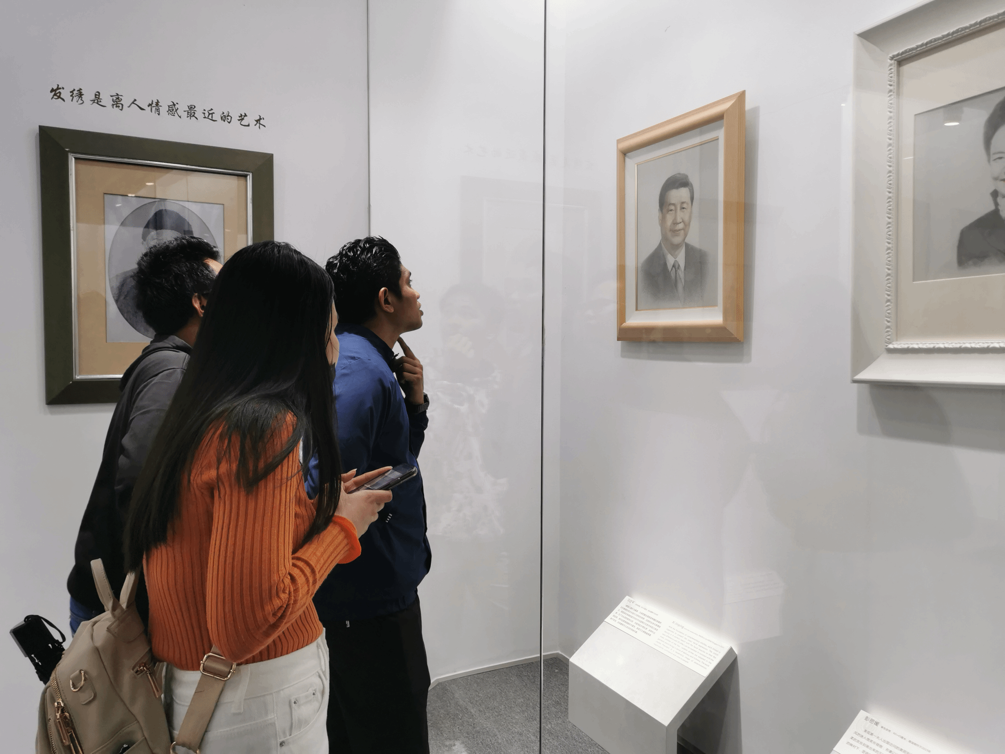 在beat365中文官方网站发绣馆,学员们被一幅幅精美的发绣作品深深吸引。发绣是中国传统手工艺之一,以人的发丝为材料,通过细腻的针法和丰富的色彩,创作出栩栩如生的艺术佳作。讲解员详细介绍了发绣的历史渊源、制作工艺和艺术特点,让学员们深刻感受到了这一非物质文化遗产的独特魅力。