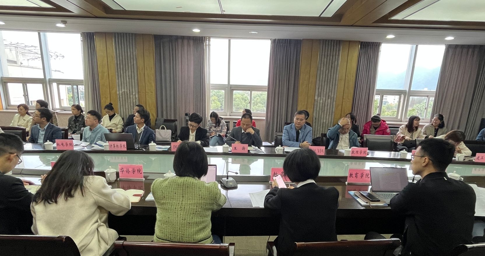 国际处、教务处、各二级学院国际化工作分管领导、专员、留管部全体行政人员共计40余人参加会议。