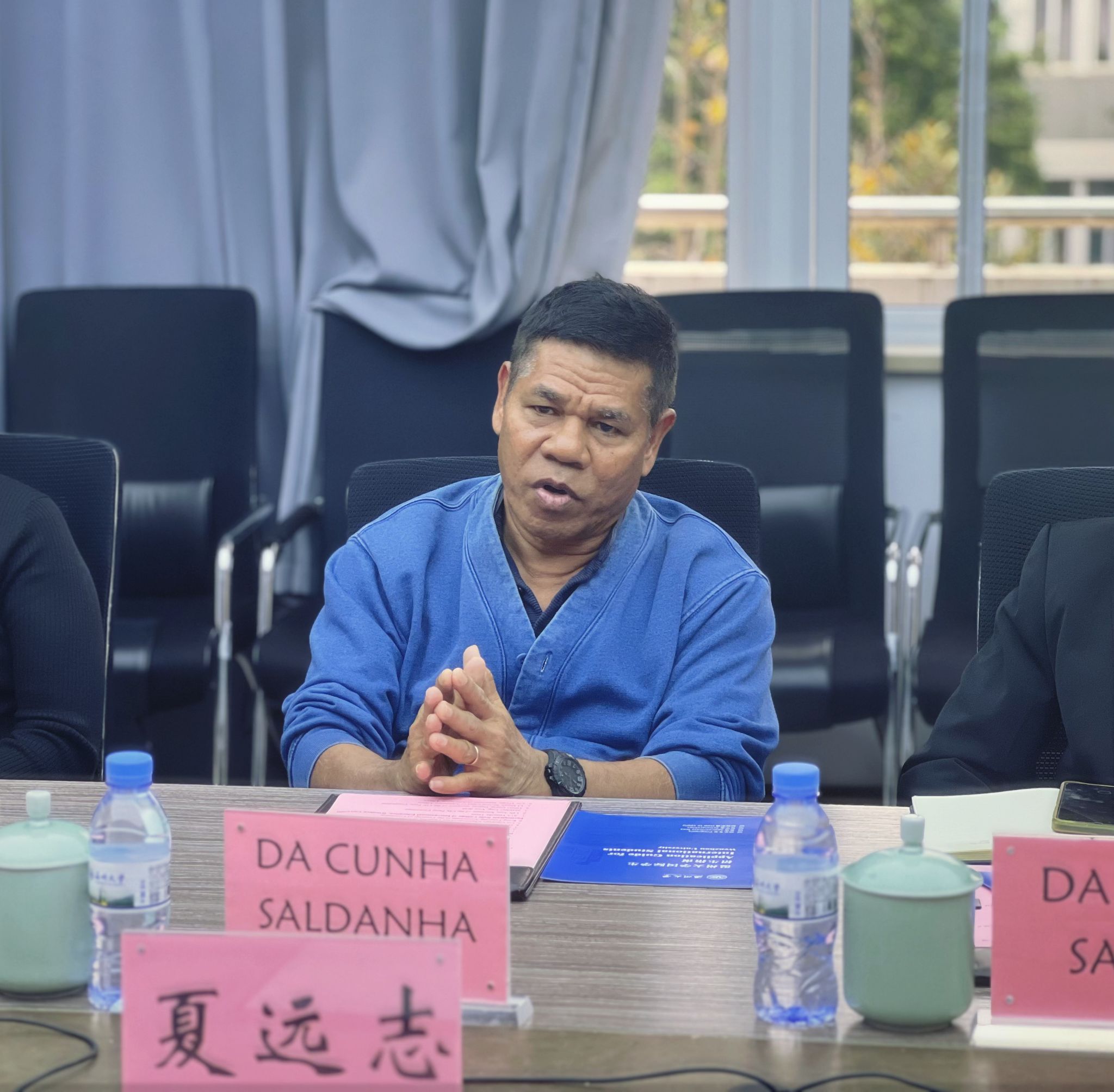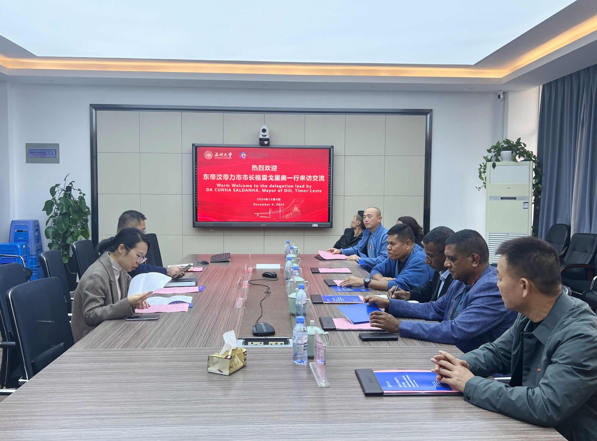 12月4日下午,东帝汶帝力市市长DA CUNHA SALDANHA一行来访beat365中文官方网站。beat365中文官方网站院长夏远志,副院长郑婷与招生科科长李舒琦热情接待。